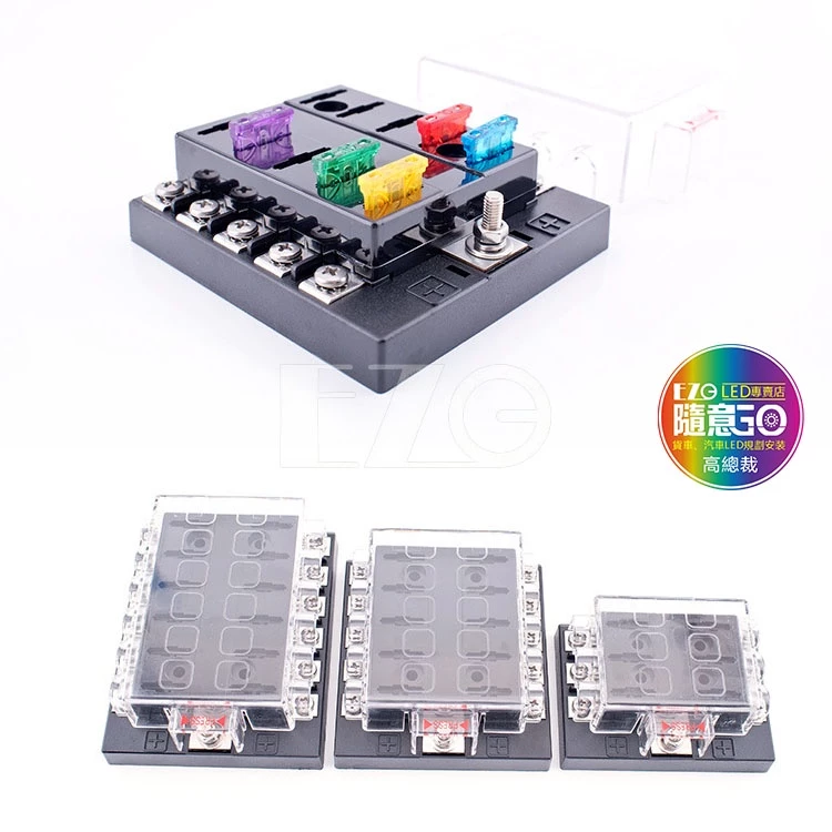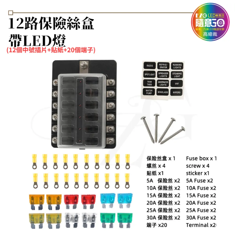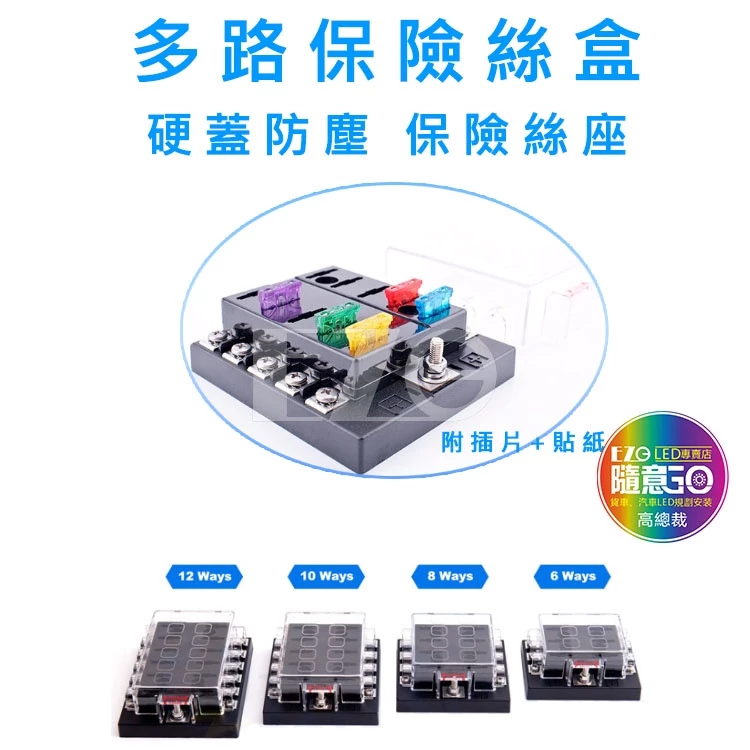 • 【高總裁LED 】台灣現貨 多路保險絲盒 6路 8路 12路 插片 貼紙 不分正反 接線盒 取電器 取電盒 改裝