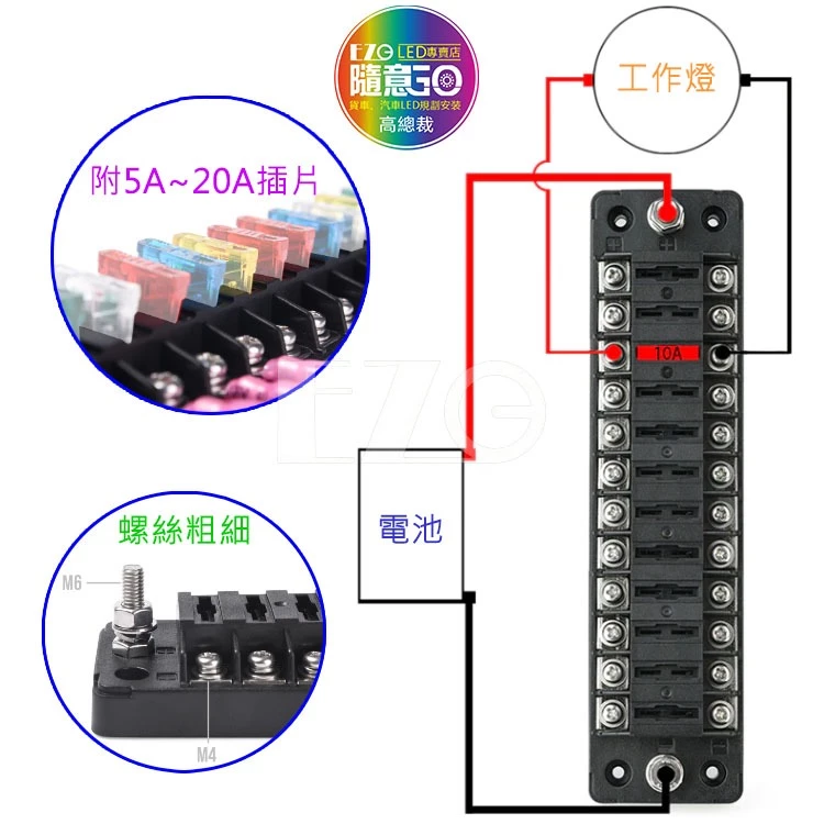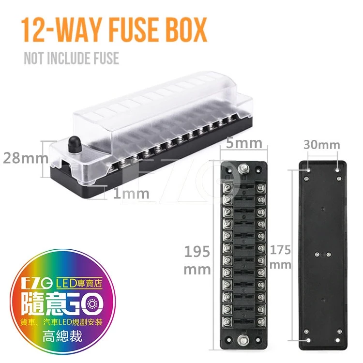 • 【高總裁LED 】台灣現貨 單排保險絲盒12路 可拆式 中號插片 貼紙 不分正反 接線盒 取電器 取電盒 改裝