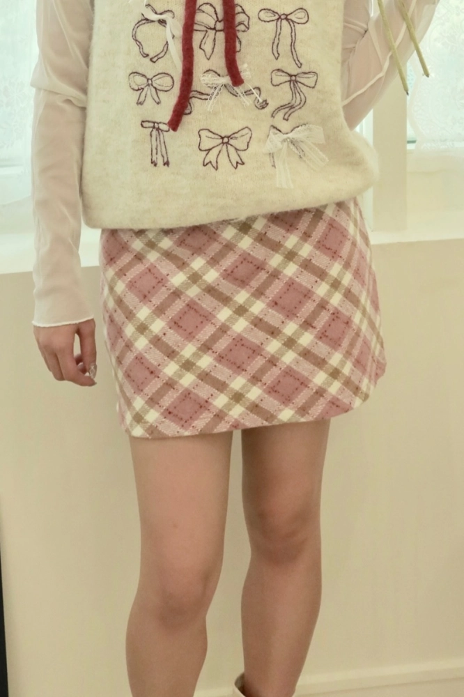 粉色毛呢格紋自帶甜辣氛圍 一穿就很亮眼✨