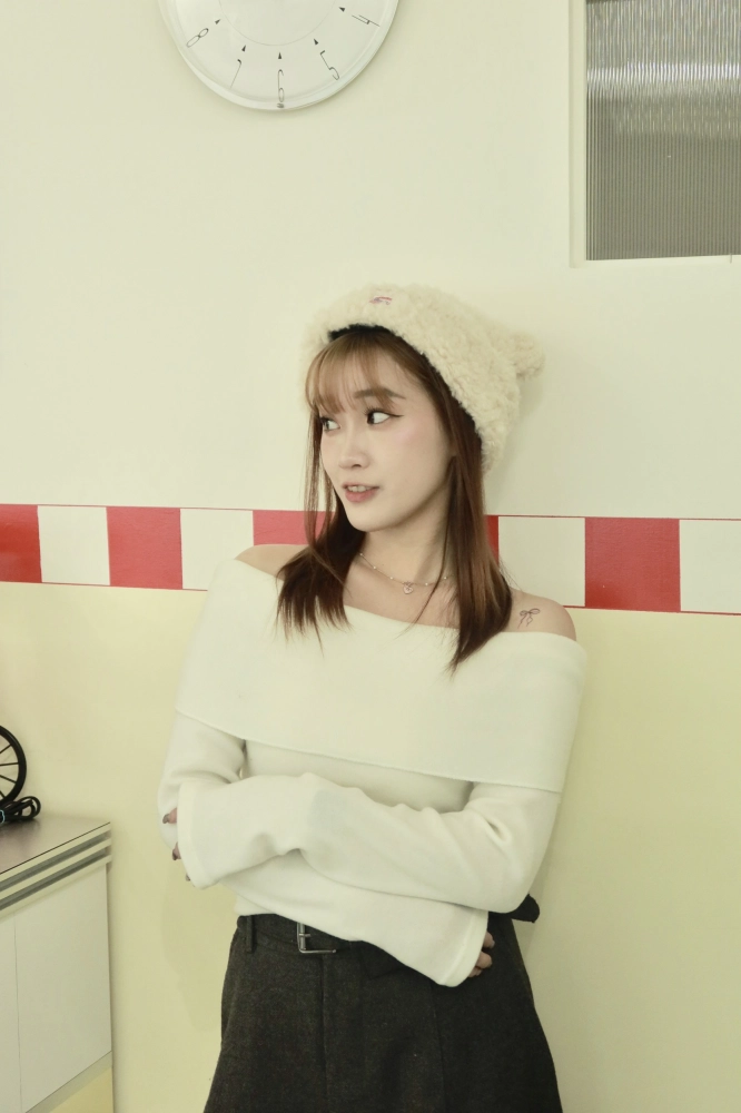 一字領設計自然露出鎖骨與肩線 氣質又顯瘦