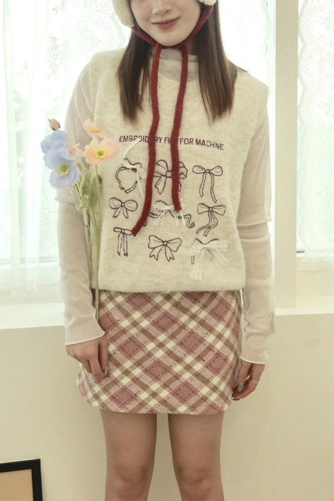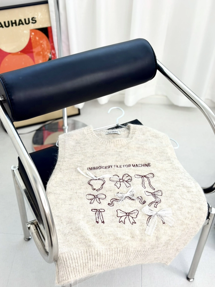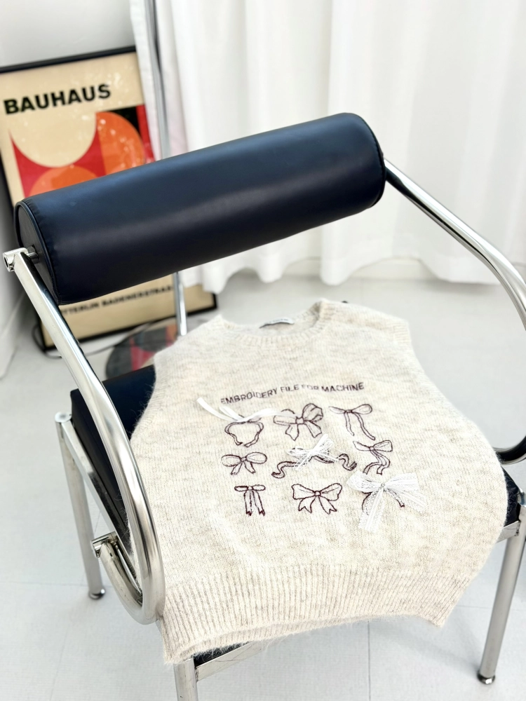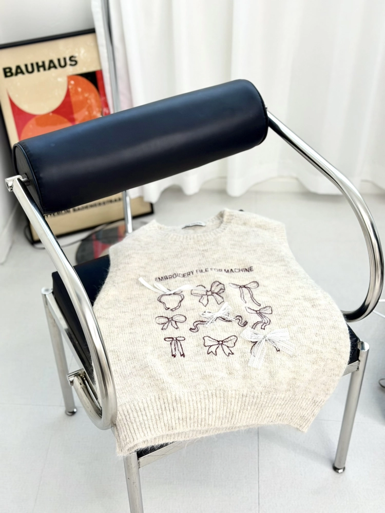 • 韓系休閒刺繡羊毛蝴蝶結背心