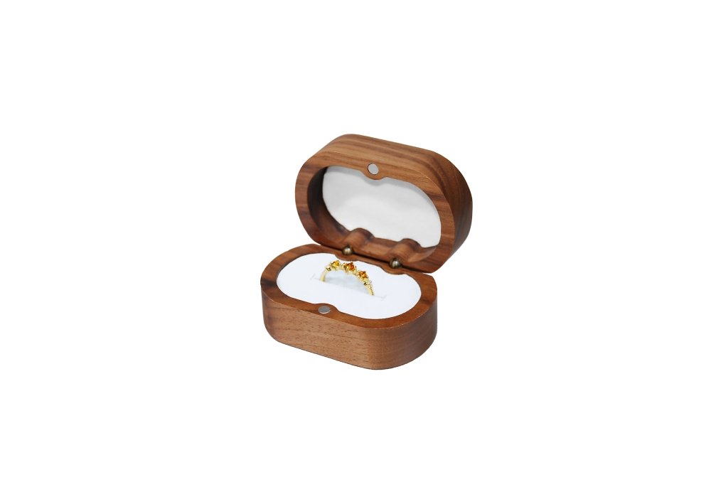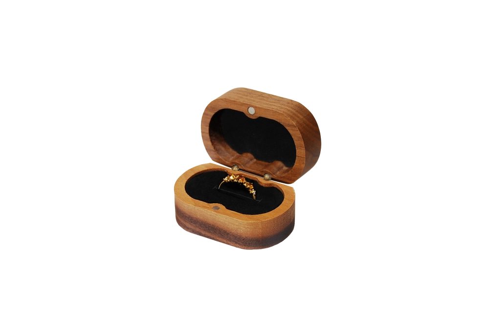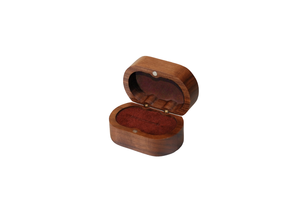 • 實木橢圓北美胡桃單戒盒