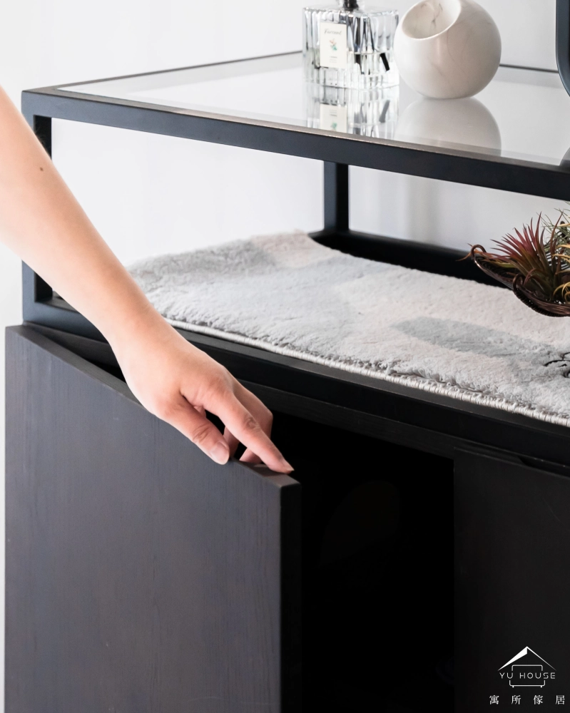 結合俐落線條與通透玻璃元素,讓收納不只實用,也成為空間裡安靜而有層次的存在。