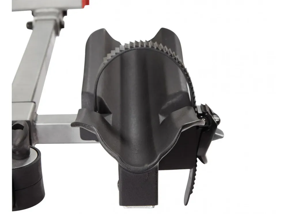 • 以帶軟墊的臂架固定自行車車架