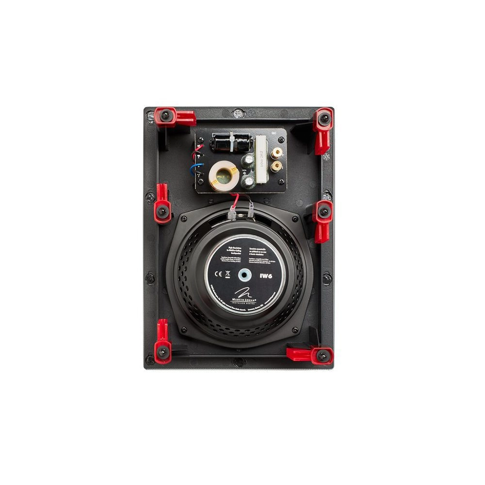 IW6採用2音路2單體設計,搭載1只0.75吋鈦振膜半球高音,搭配磁流體散熱系統,強調能夠呈現柔和清晰的高音。另外再加上1只6.5吋礦物填充PP振膜中低音,配上配經過電腦計算優化的磁力引擎結構,可提供純淨清晰的中音以及良好的低頻延伸。原廠特別提到,IW6的分音器以手工製作而成,使用優質電容與空心線圈,並且採用Martin Logan獨家Vojtko拓樸結構,確保低失真以及單體銜接順暢。喇叭端子為彈簧式設計,可以接受較粗的喇叭裸線或是使用香蕉插端子。