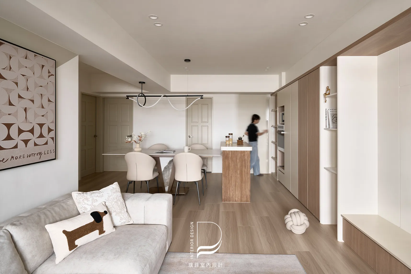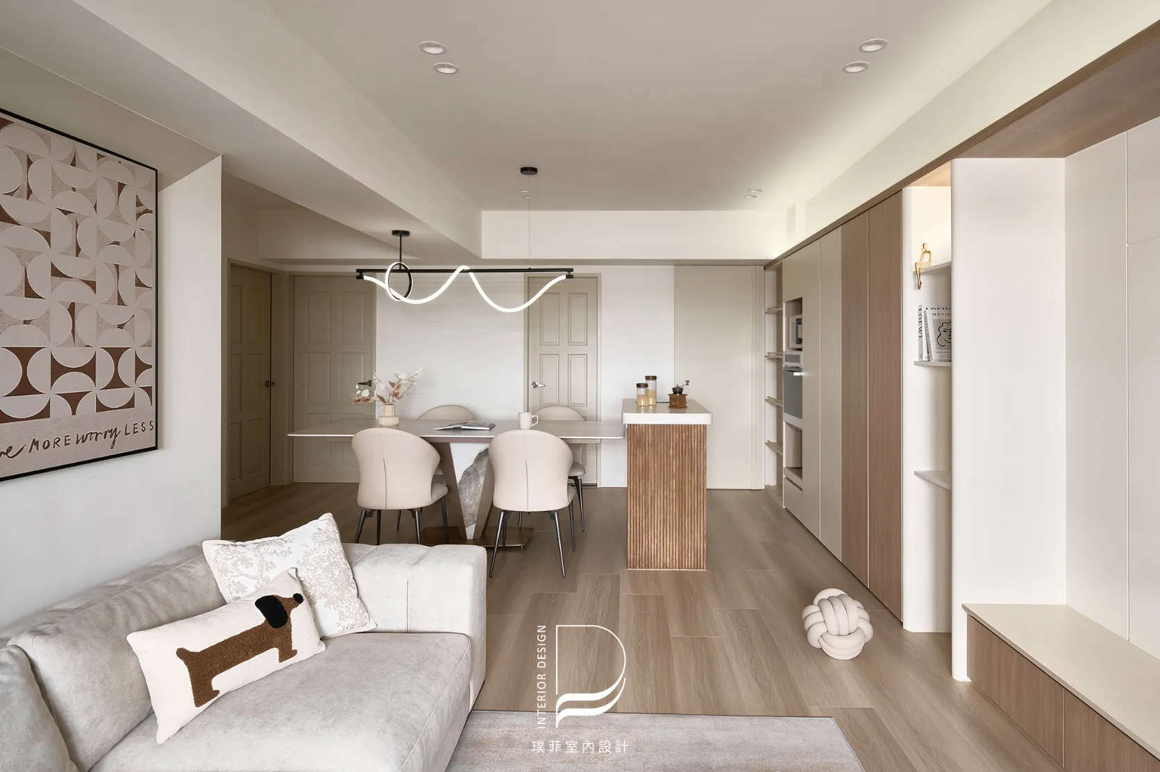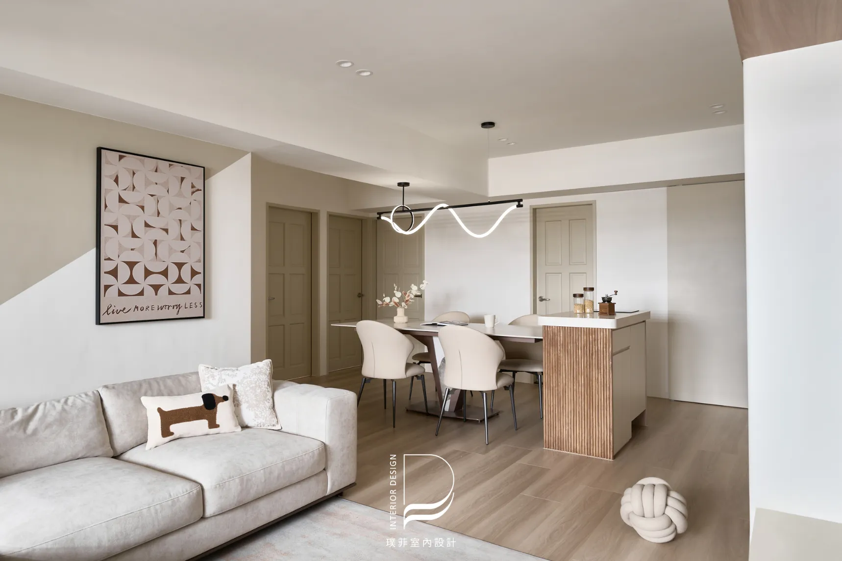 我們以低飽和奶霜色調鋪陳整個空間,讓光線慢慢流動,像被溫柔接住的日常。