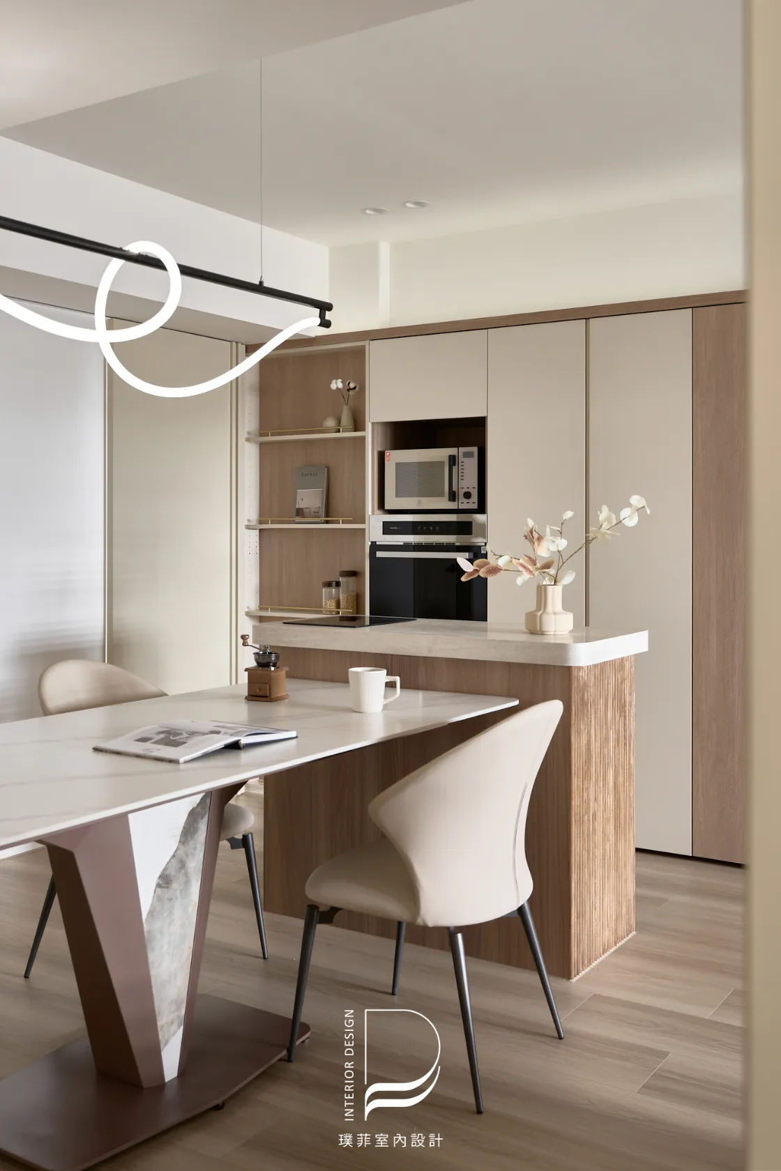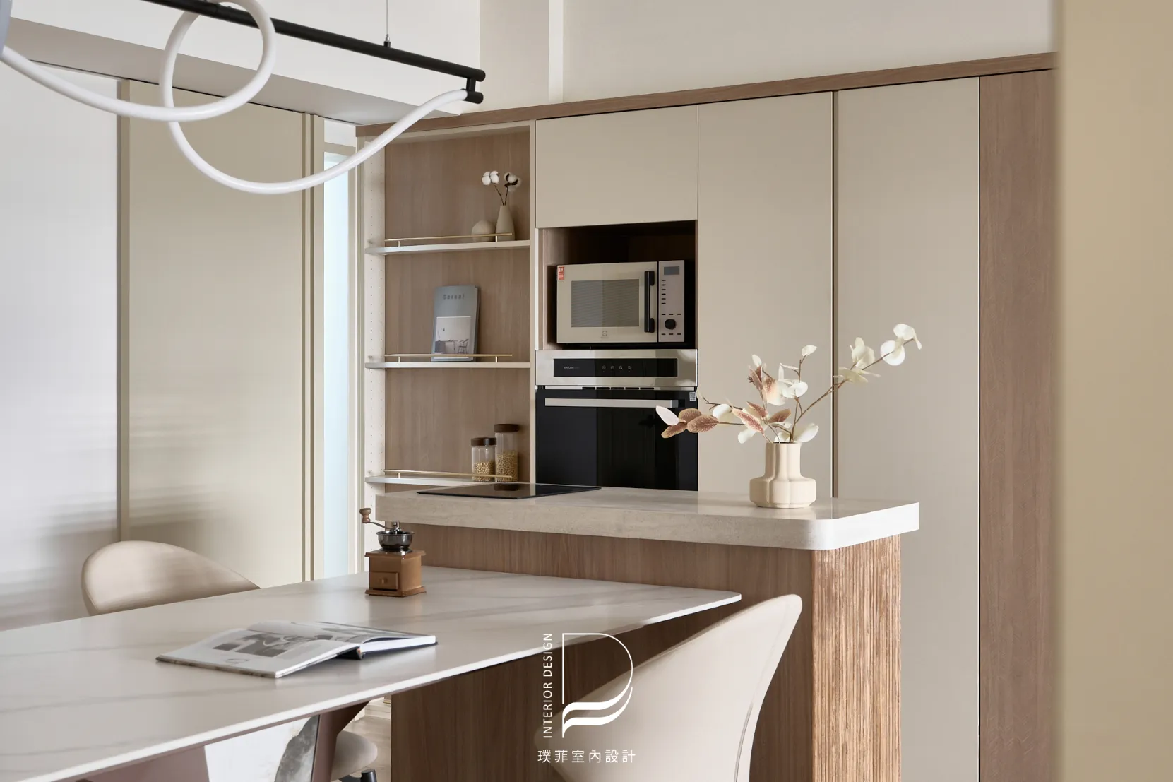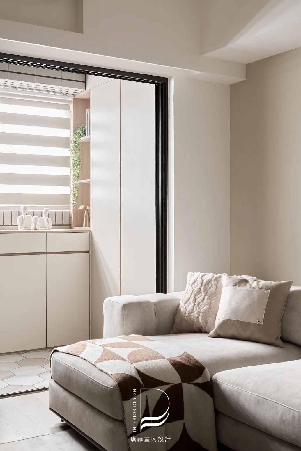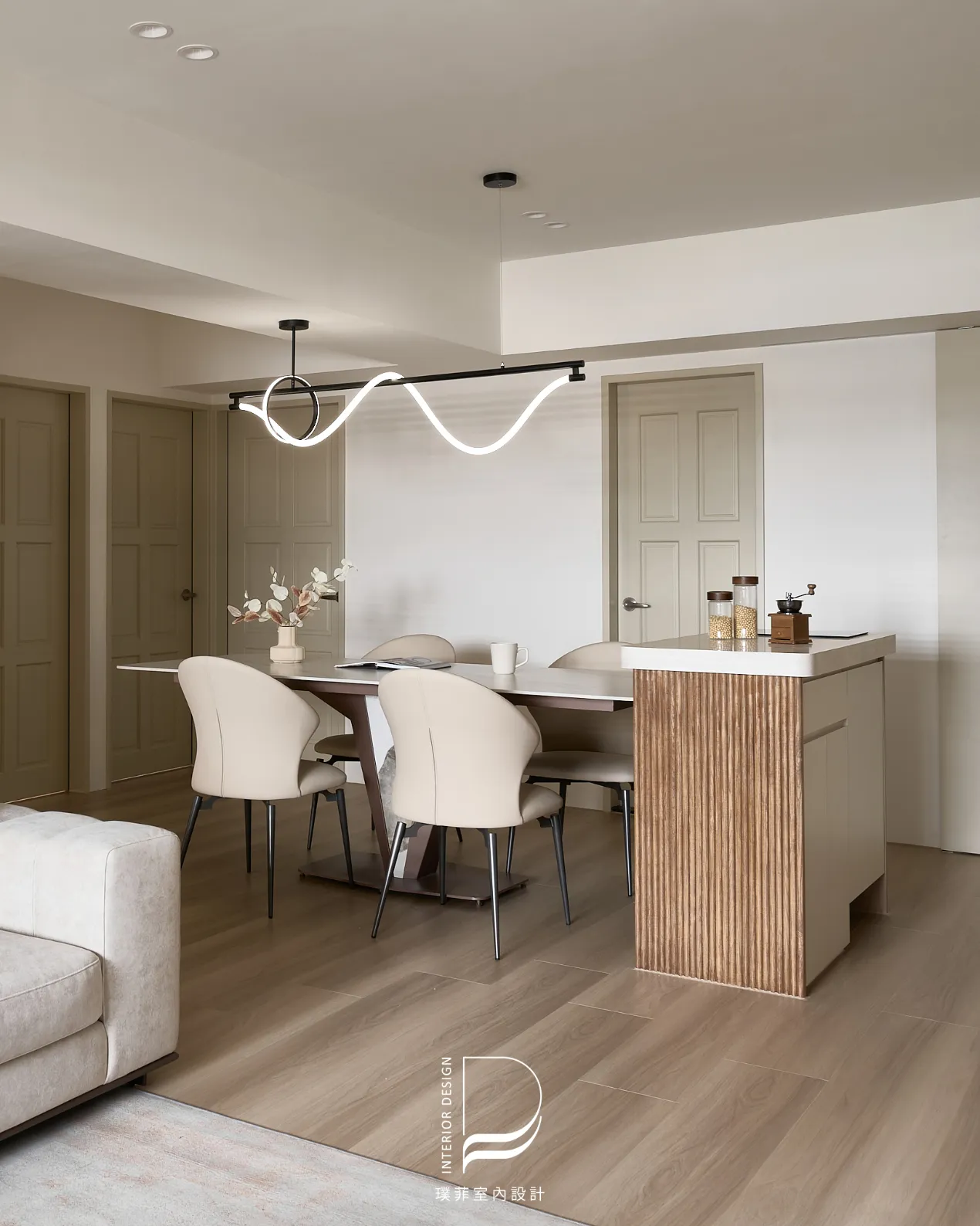 我們以低飽和奶霜色調鋪陳整個空間,讓光線慢慢流動,像被溫柔接住的日常。