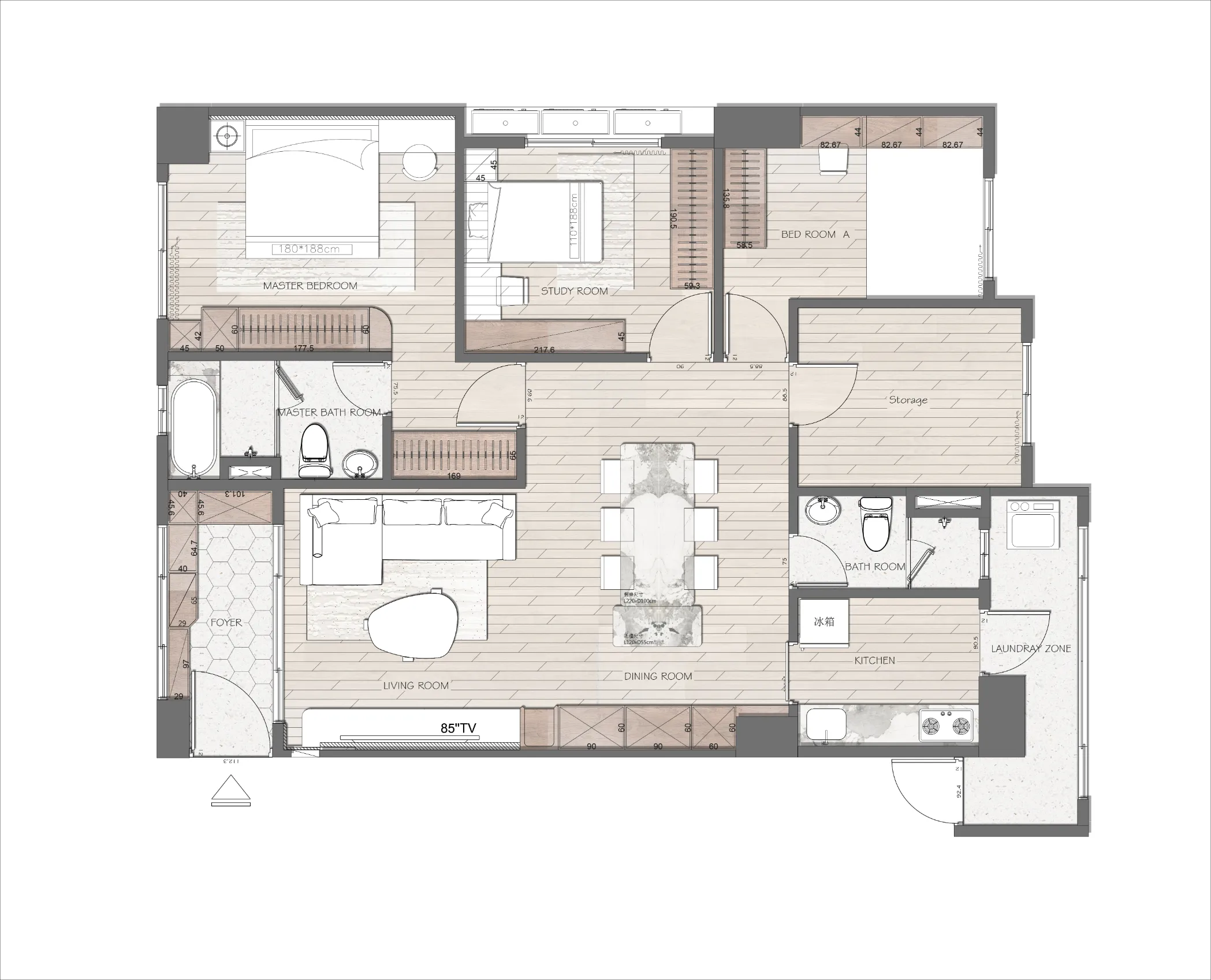 - 主要建材|木作塗裝木皮、鋁框玻璃門、燈條、烤漆、超耐磨木地板、SPC花磚、系統板材、訂製乾濕分離門