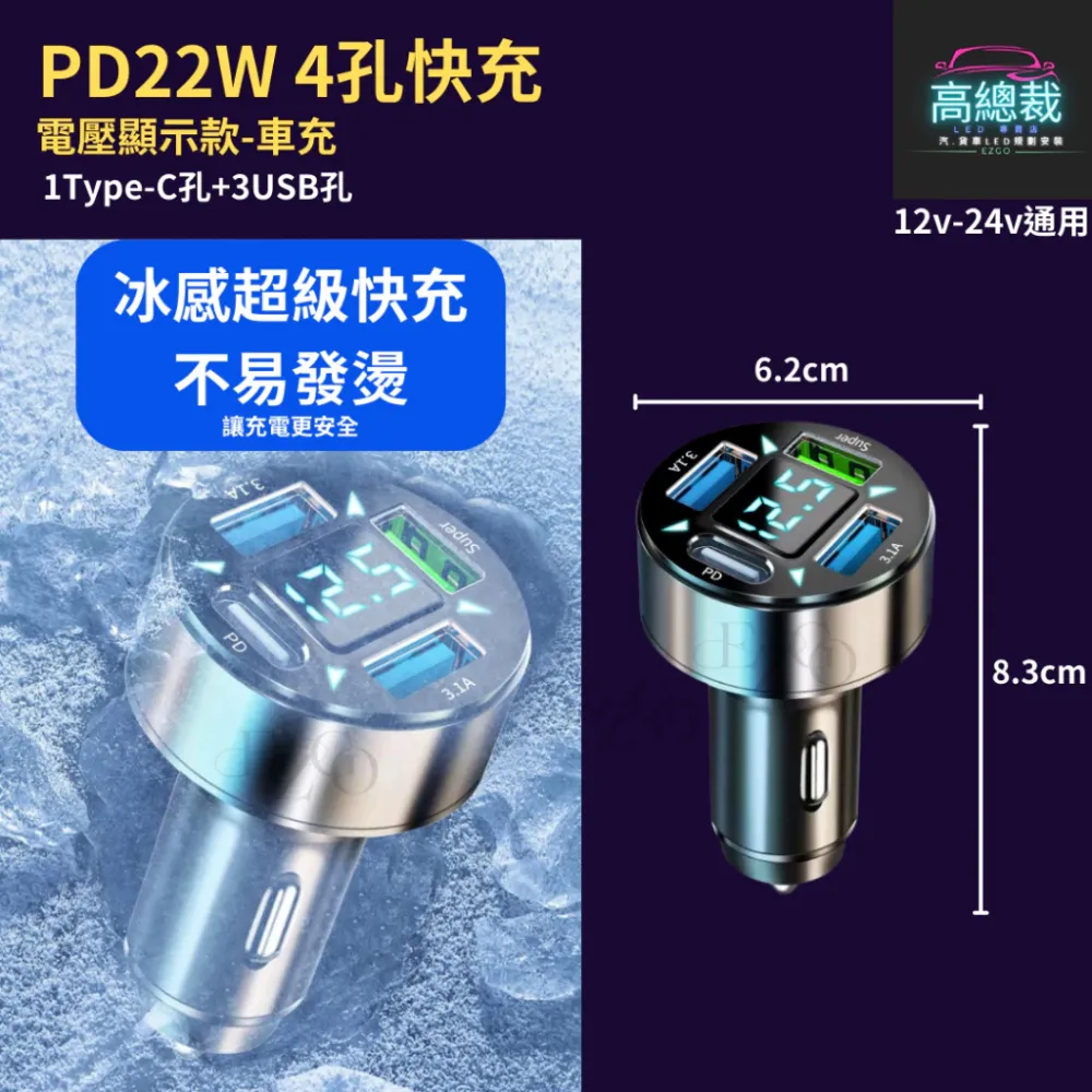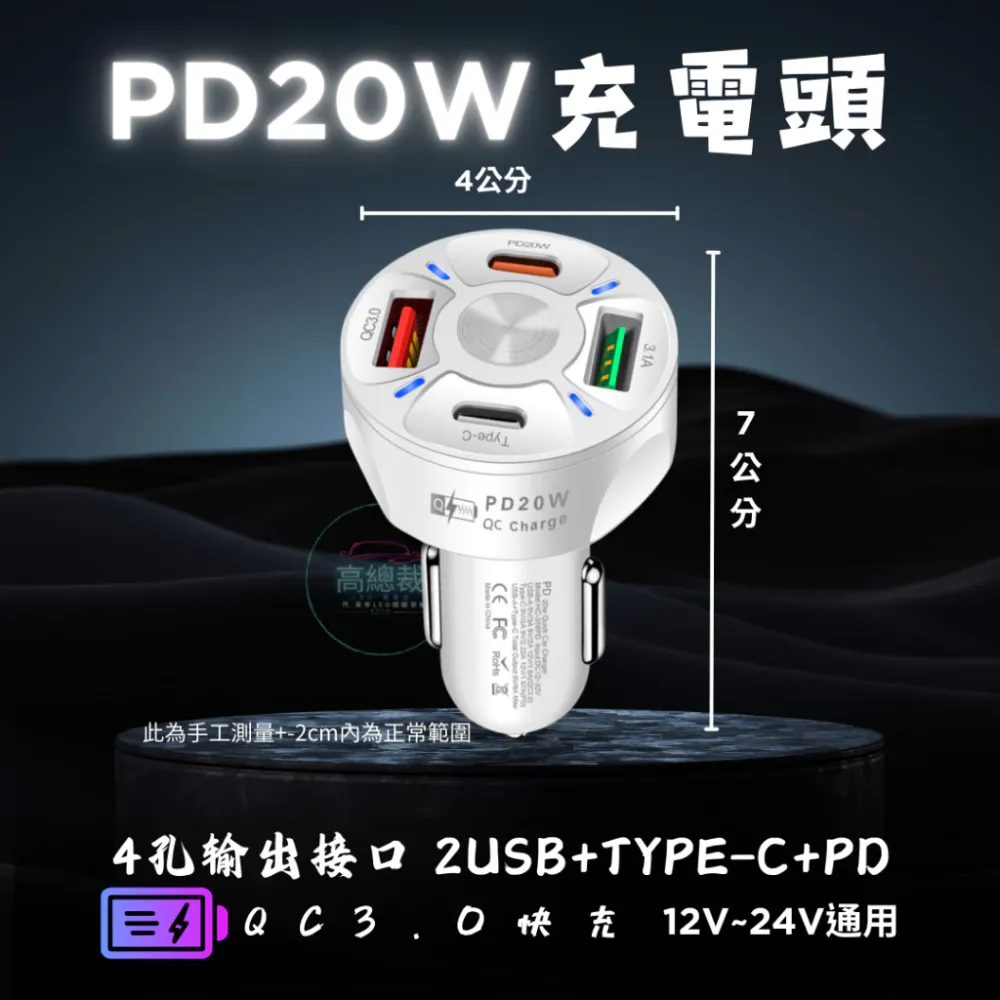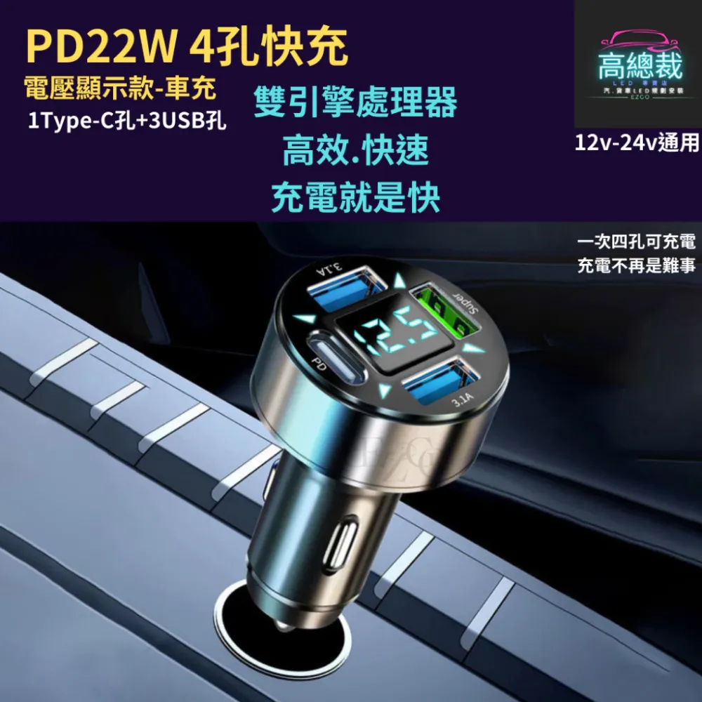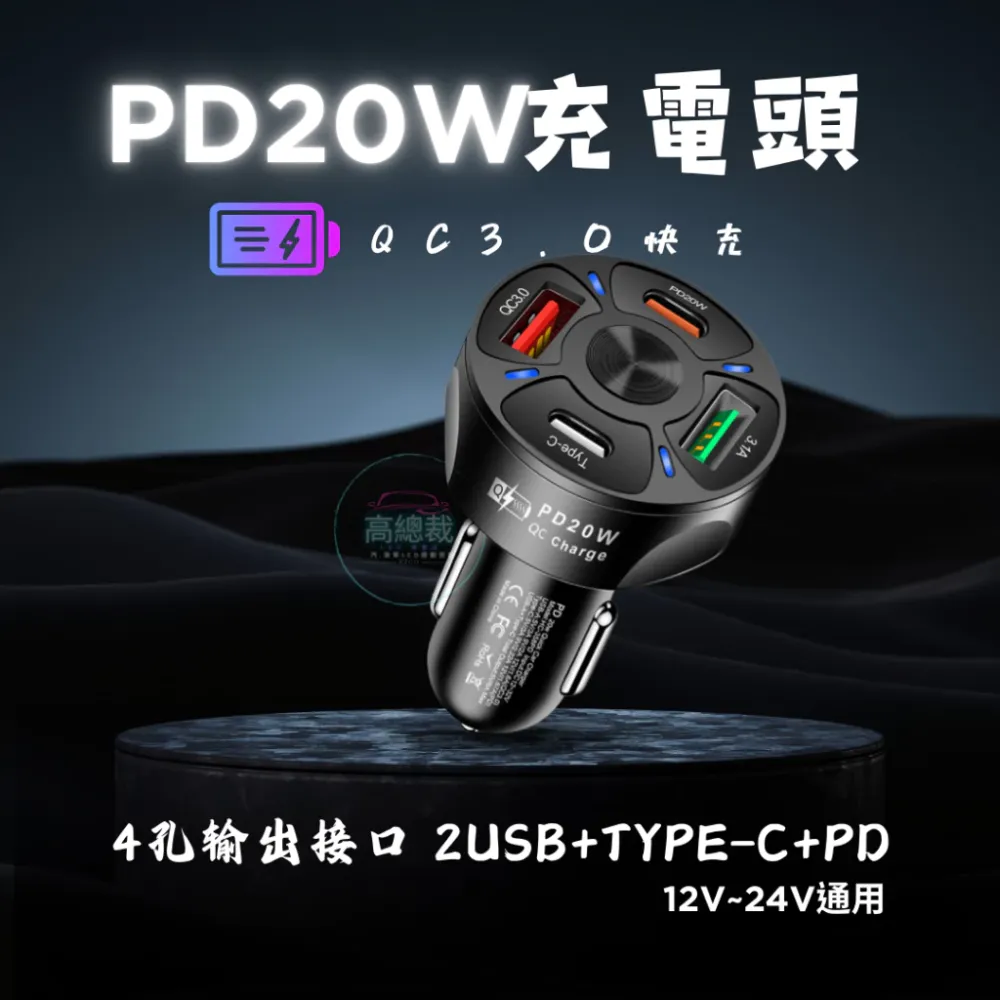 • 【高總裁LED 】台灣現貨 4孔快充 車載充電器 超級快充 點煙轉插頭 汽車用 QC3.0 車載USB車充