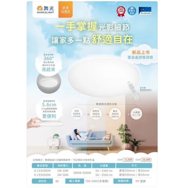 商品舞光 LED 30W/50W 暖陽遙控吸頂燈 調光調色(D-CEW30DM / D-CEW50DM)附遙控器