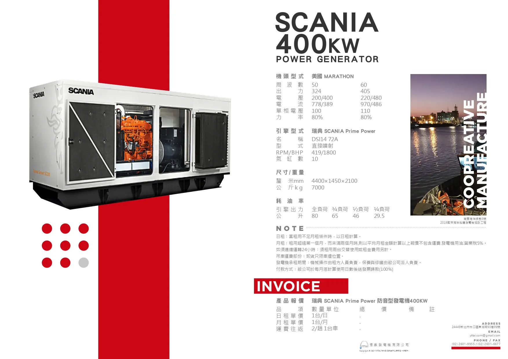 引擎型式 : 瑞典 SCANIA Prime Power
