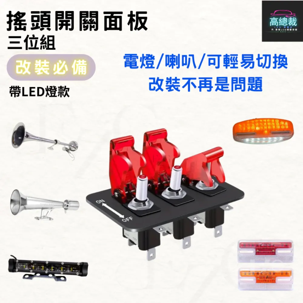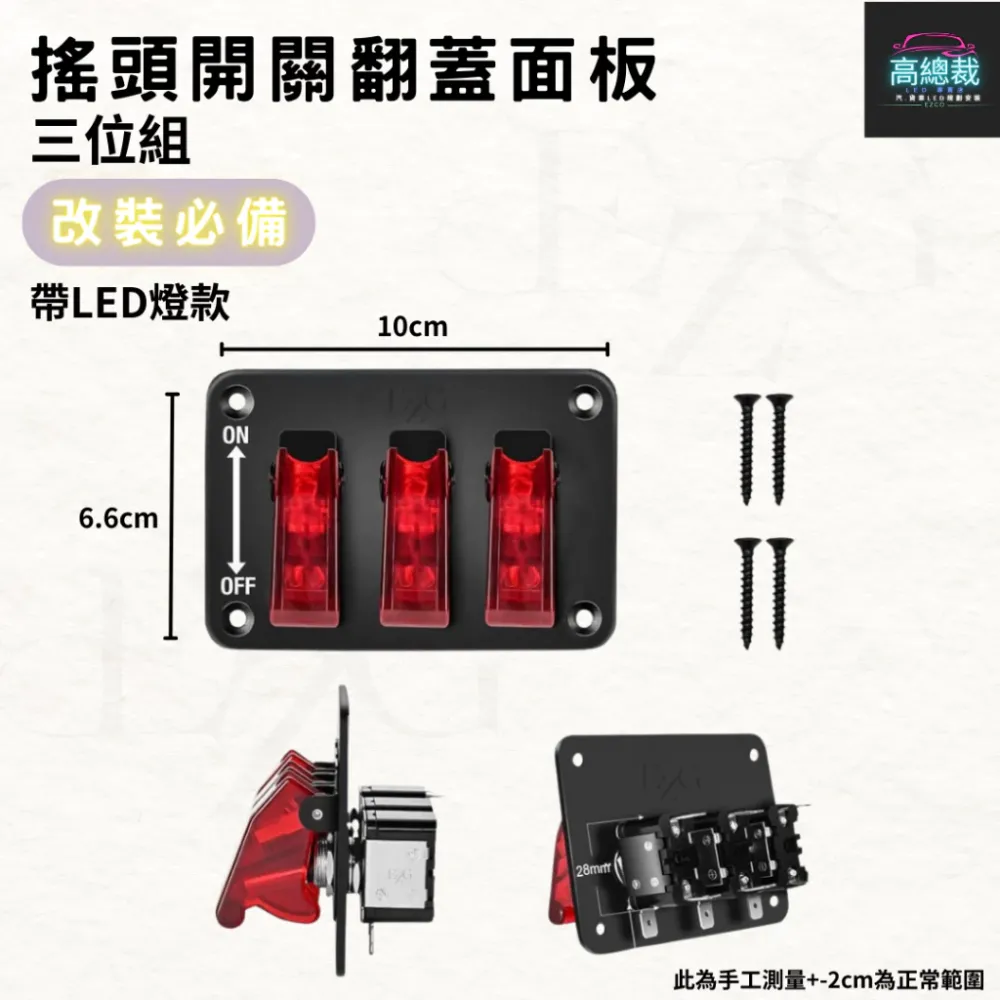 • 【高總裁LED 】台灣現貨 搖頭開關翻蓋面板 三位組 開關面板 帶LED燈顯示 撥動開關面板 12V-24V 紅光