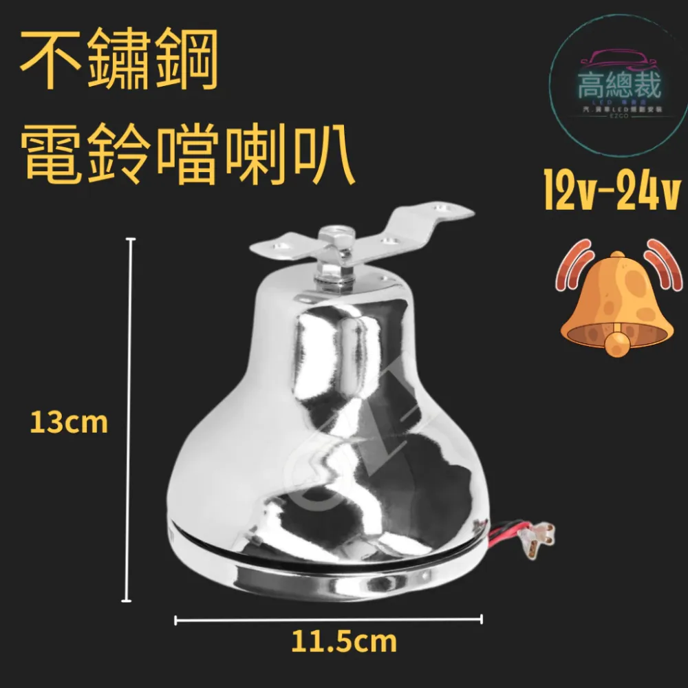• 【高總裁LED 】台灣現貨 不鏽鋼電鈴噹喇叭 12V 24V 白鐵喇叭 師公鈴 放飯鈴 下車鈴 趣味鈴 電喇叭