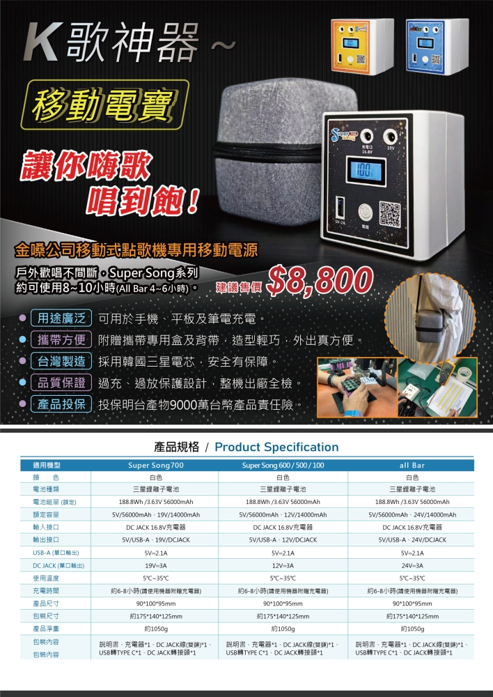 -台灣製造:採用韓國三星電芯,安全有保障。