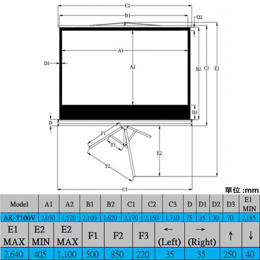 Akia Screens AK-T100V 三腳支架幕 4:3 100吋