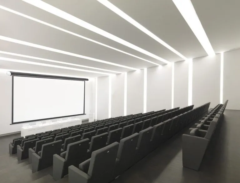 三層複合結構,玻璃纖維幕基,幕面左右兩側不會捲邊,平整度持久,觀賞面不規則壓花紋路,不會有干擾摩爾紋現象,反射光線分布均勻,還原色彩亮度,成像效果飽和。防霉、防火阻燃、可清潔擦拭。