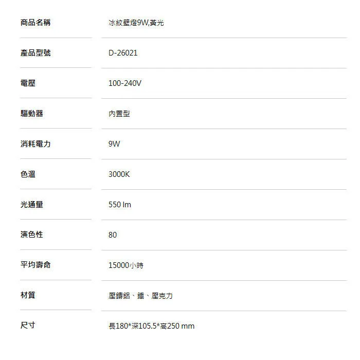 商品LED 7W 金箔雙壁燈附光源(限裝潢板用) 黑LED-26001-BK / 白LED-26001