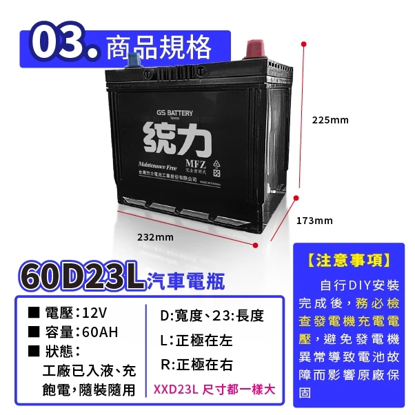 ■ D代表寬度、23代表長度、L代表正極在左邊、R代表右邊
