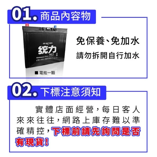 商品GS統力 汽車電池 75D23L汽車電瓶 55D23L加強版 RAV4 馬3 馬5 Sentra Lancer