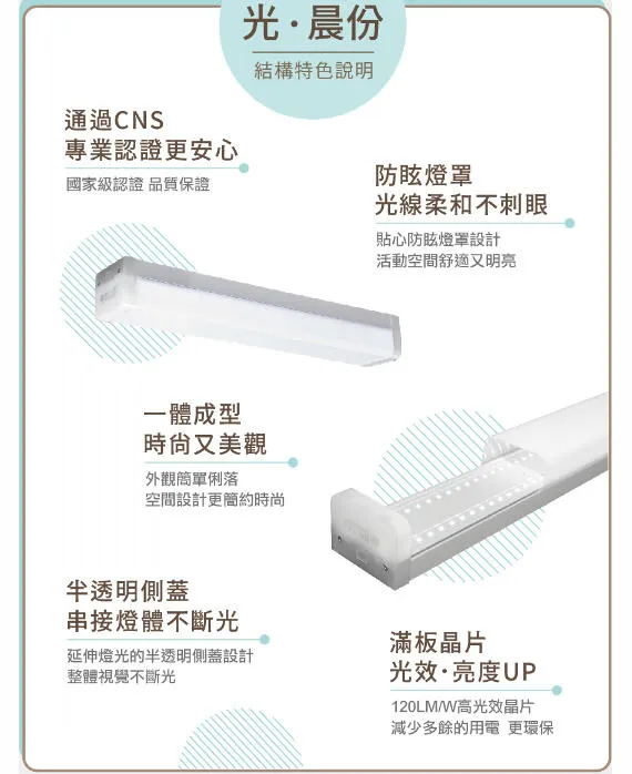 2. 防眩燈罩柔和不刺眼,霧透側蓋不斷光