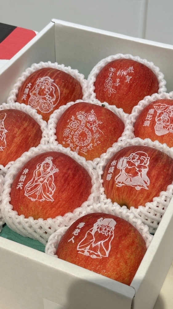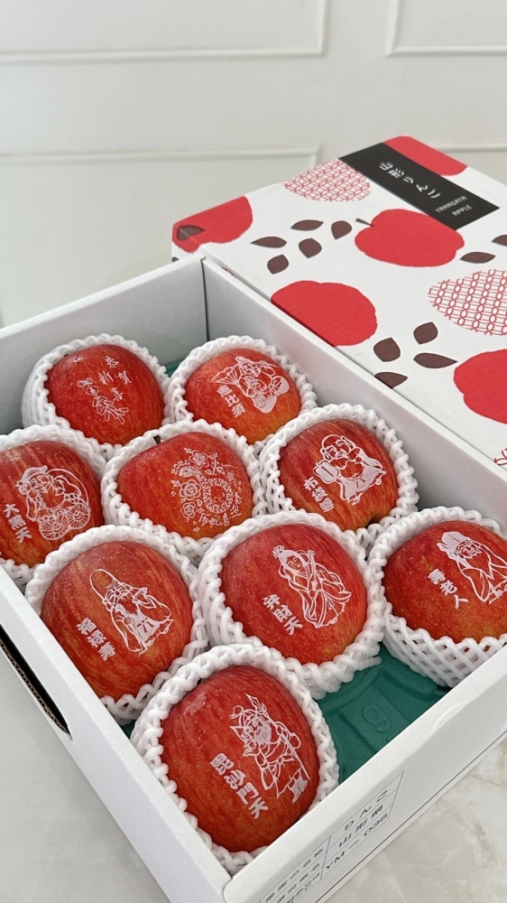 除了職人嚴格挑選的完美蘋果,每顆都使用食用色素繪去寫出不一樣的祝福