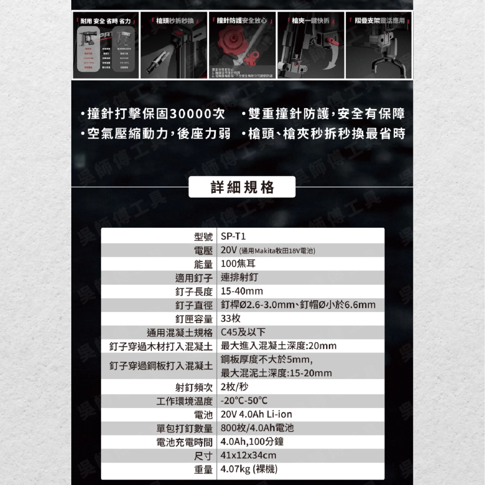 【SP-T1】18V鋰電鋼釘水泥擊釘槍(單主機無電池及充電器)適用牧田18V電池