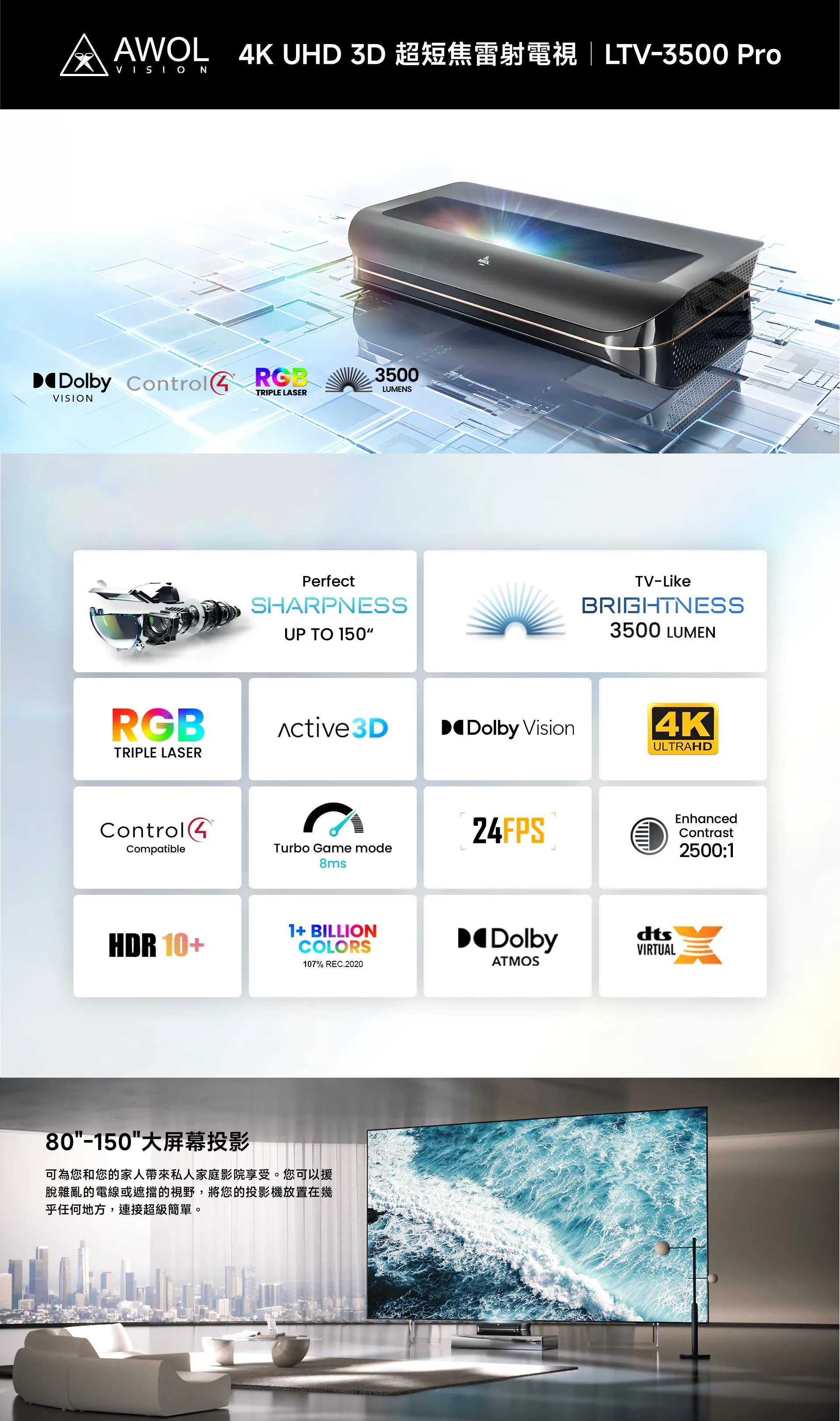 商品Optoma Wave 110S 3500流明 1080p 家庭影音 雷射短焦投影機