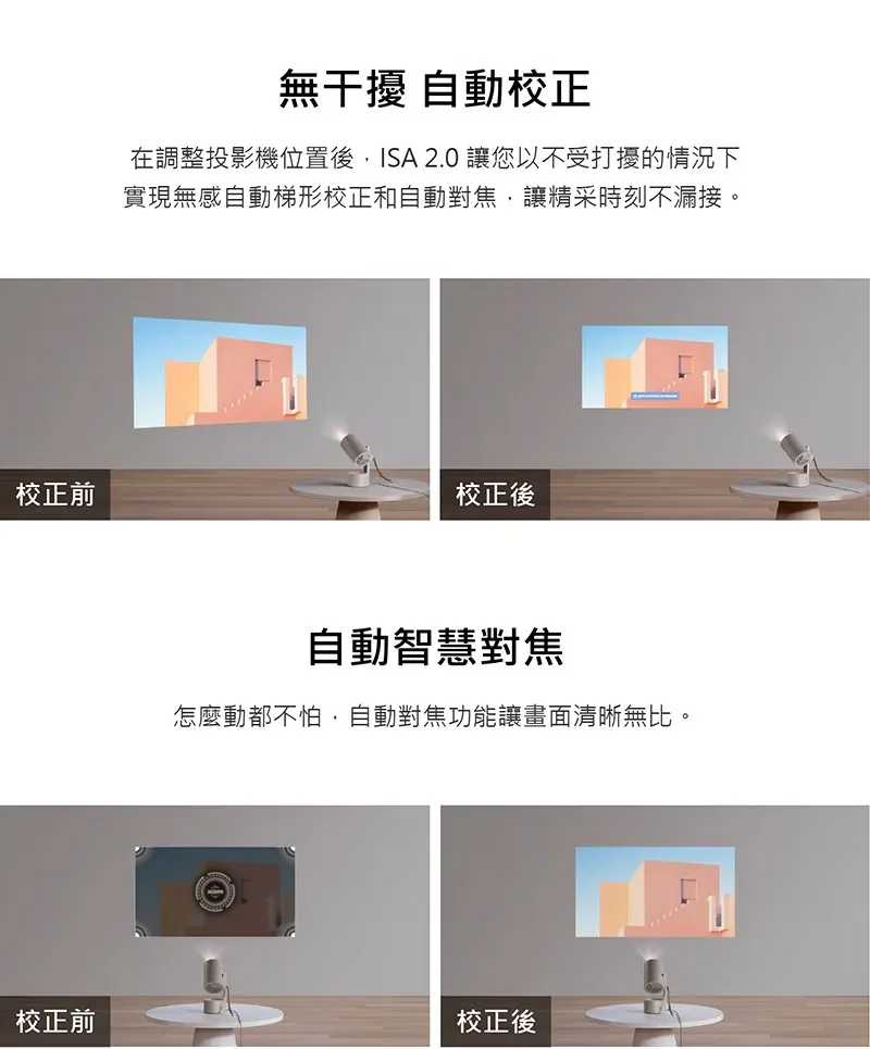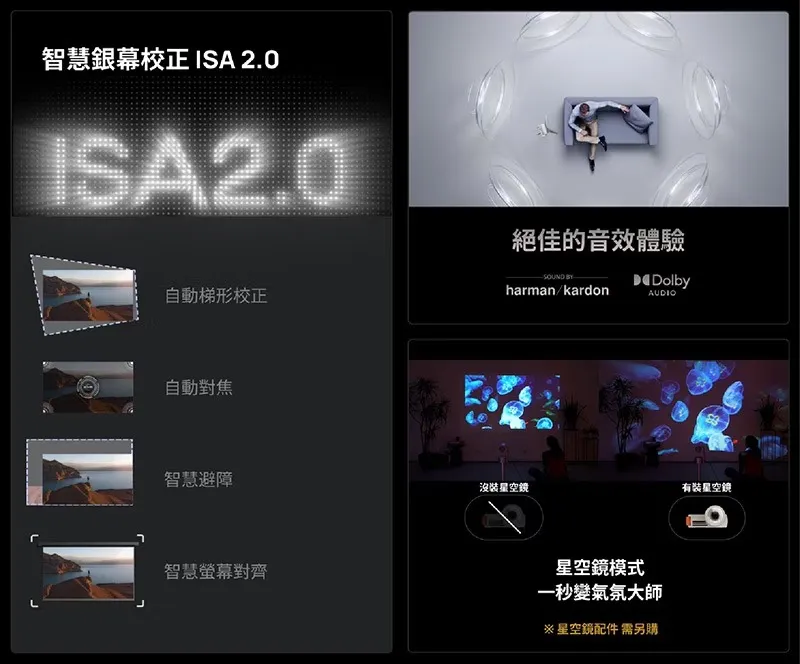 | ISA 2.0 智慧銀幕適應技術 | 無干擾自動校正、智慧銀幕對齊 智慧自動避障、自動智慧對焦 |
