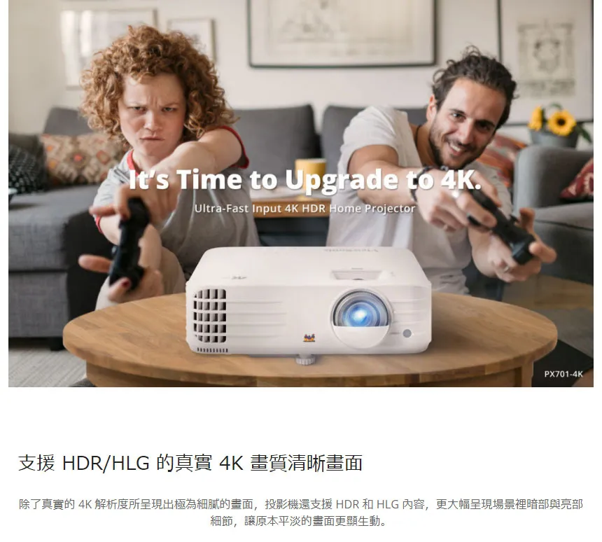 商品BenQ TK700 3200流明4K HDR高亮遊戲側投三坪機 原廠3年保固