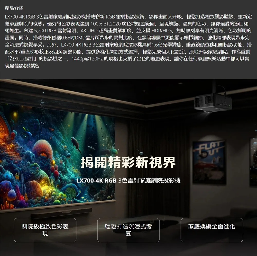 -採用創新RGB雷射技術的家用娛樂投影機
