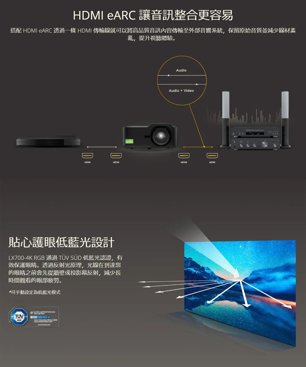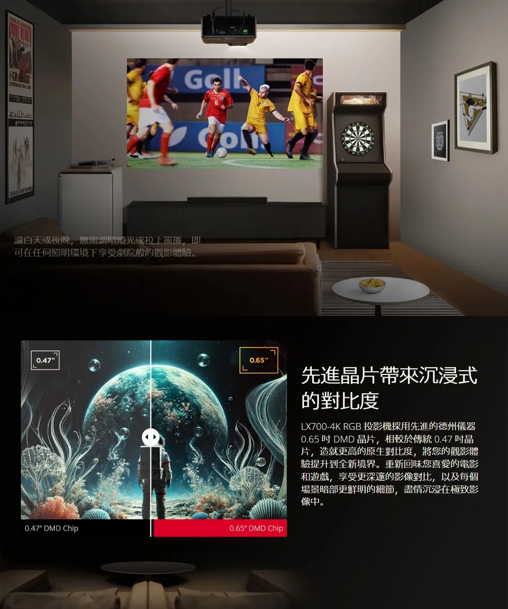 -0.65 吋 DMD 晶片提供 4K HDR 高對比的沉浸式影像