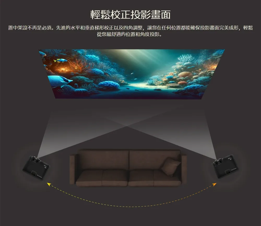 -1.6倍光學變焦、垂直鏡頭位移和H/V梯形校正,架設靈活又容易