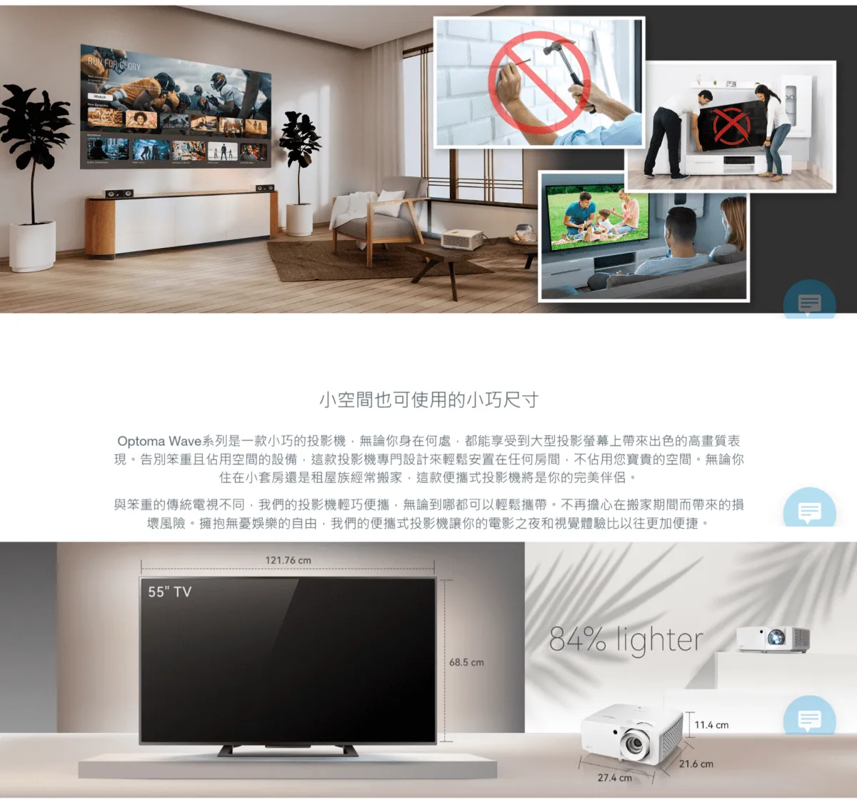 商品Optoma Wave 110S 3500流明 1080p 家庭影音 雷射短焦投影機