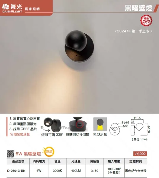 商品舞光 LED 3W 科夫床頭壁燈 LED-26010-BK (限裝潢版)