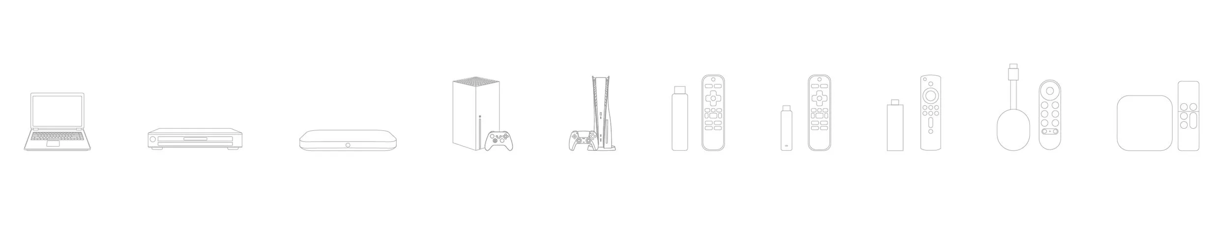 享受無止盡的娛樂生活。透過雙 HDMI2.0 支援,可以外接來自 Roku, Amazon Fire TV, Chromecast Ultra, Nvidia Shield TV, Apple TV, Chromecast with Google PlayStation 5 和 Xbox Series X/S 等裝置。