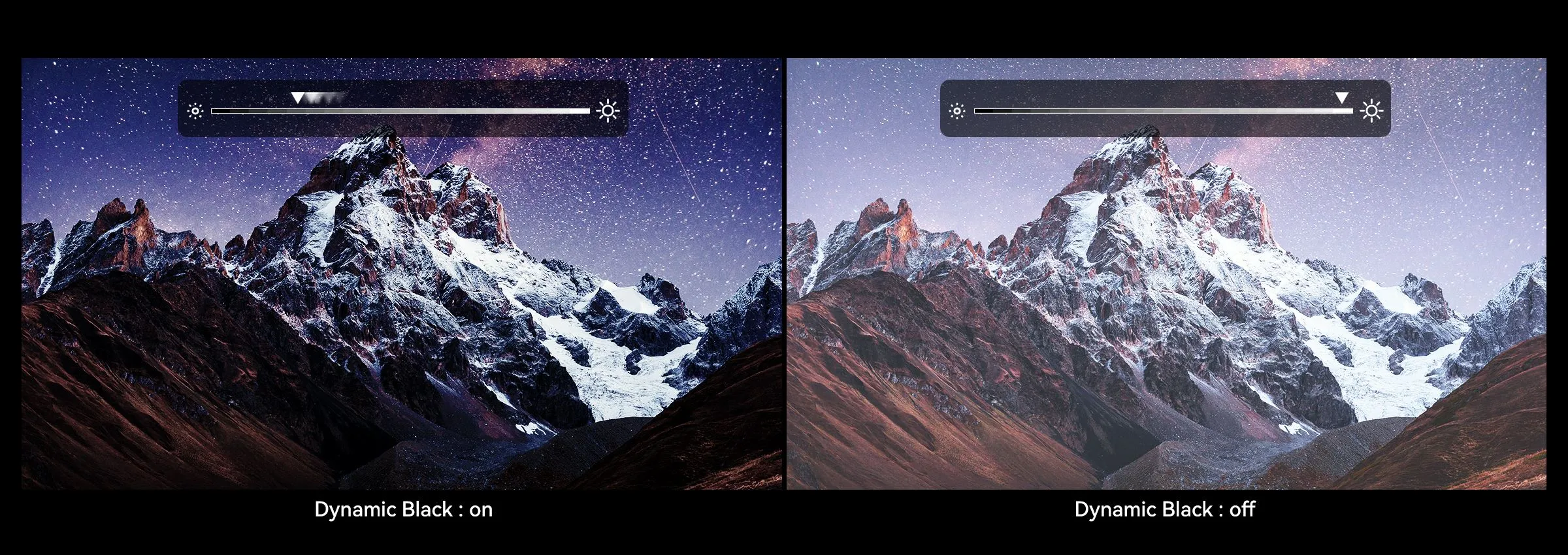Dynamic Black 智慧動態光圈能精準控制光源輸出功率並自動調節影像黑階場景變化,不需機械光圈輔助,即可將影像動態對比大幅提升,真實重現影像黑階之美。