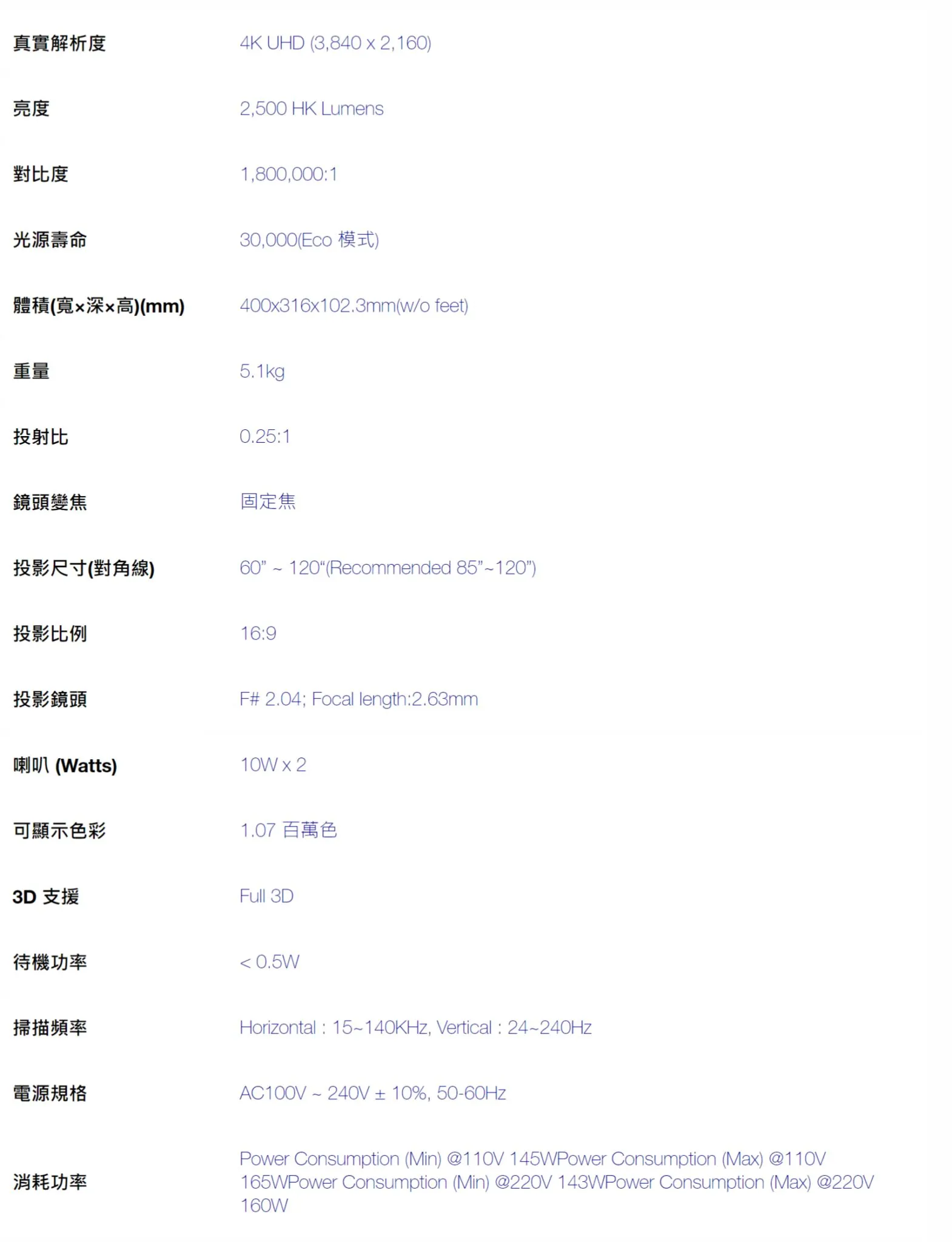 -最小巧、最高效、真正4K超高解析視覺體驗的投影機