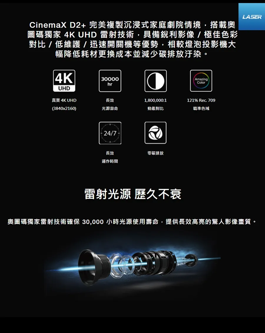 DuraCore 雷射技術,30,000hrs 長效光源壽命(Eco 模式)