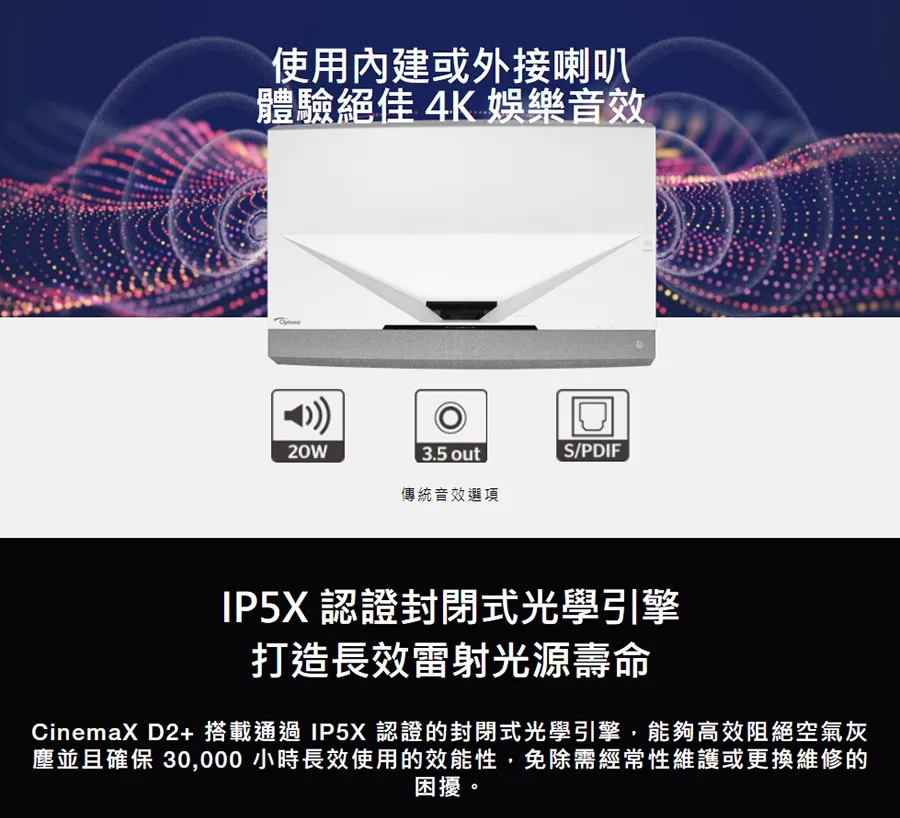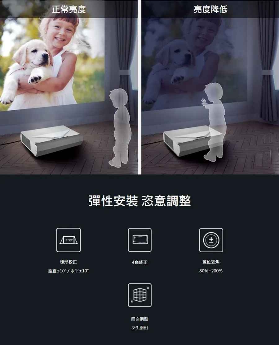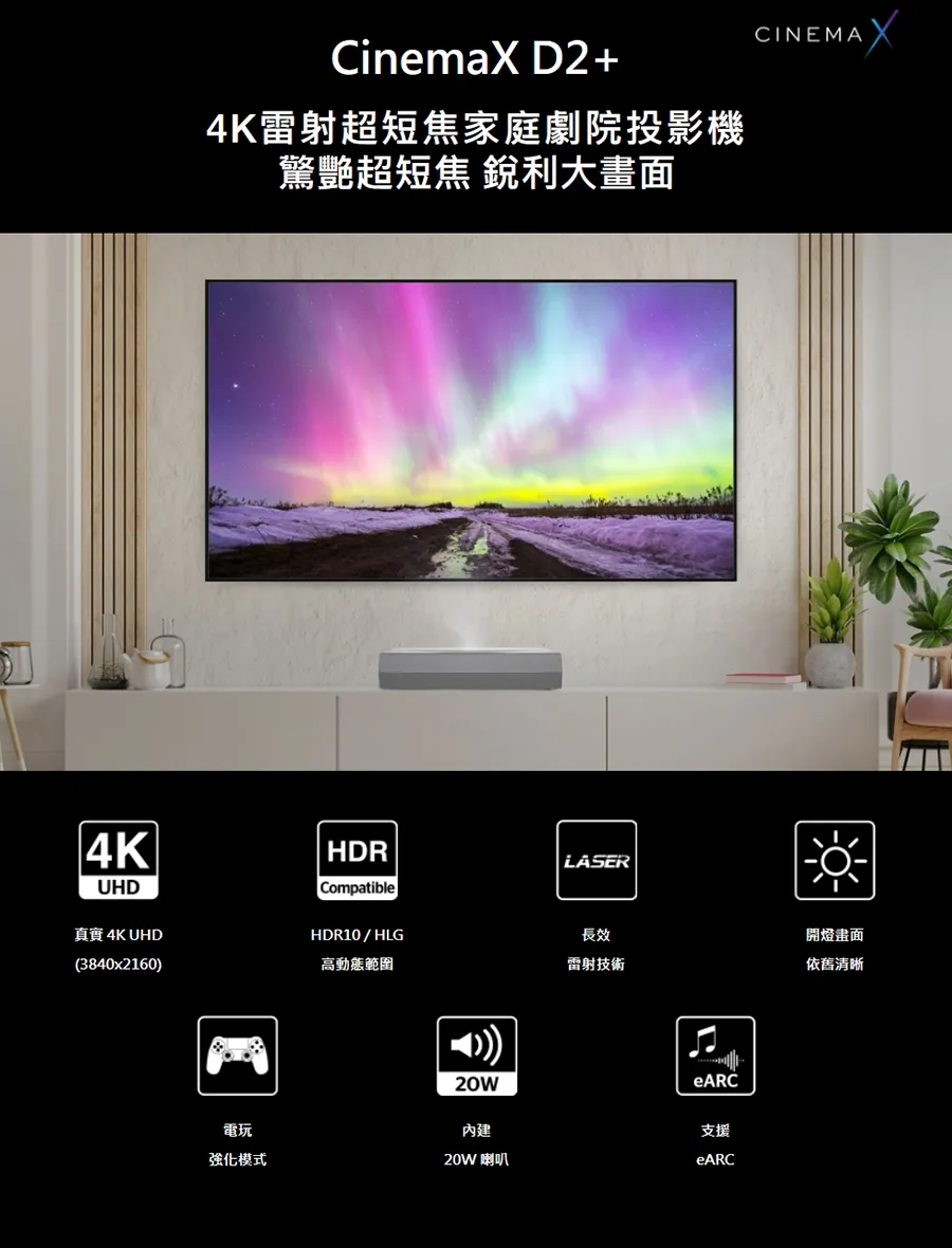 4K雷射超短焦家庭劇院沉浸式真實 4K UHD 解析度,搭載完美、精確的像素校正
