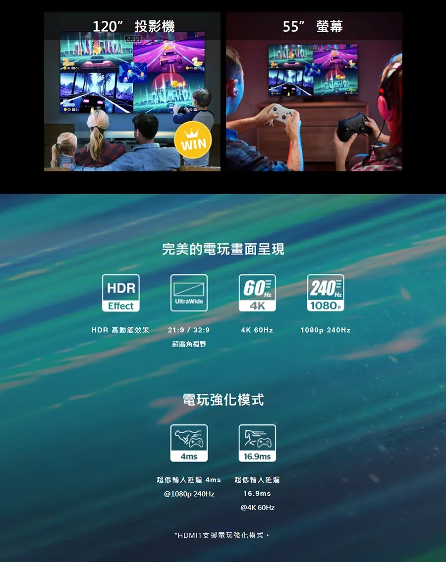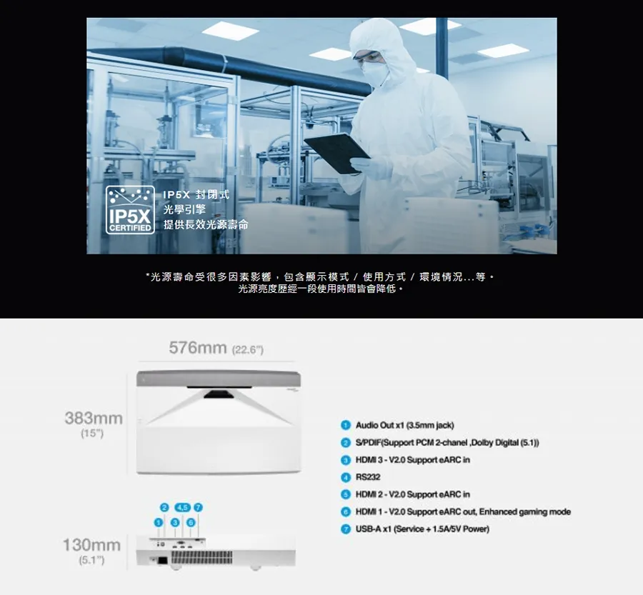 超短焦鏡頭設計,30公分投出百吋大畫面