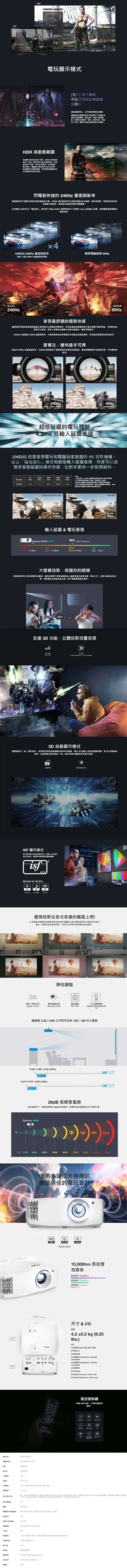 4K UHD 劇院級電玩投影機