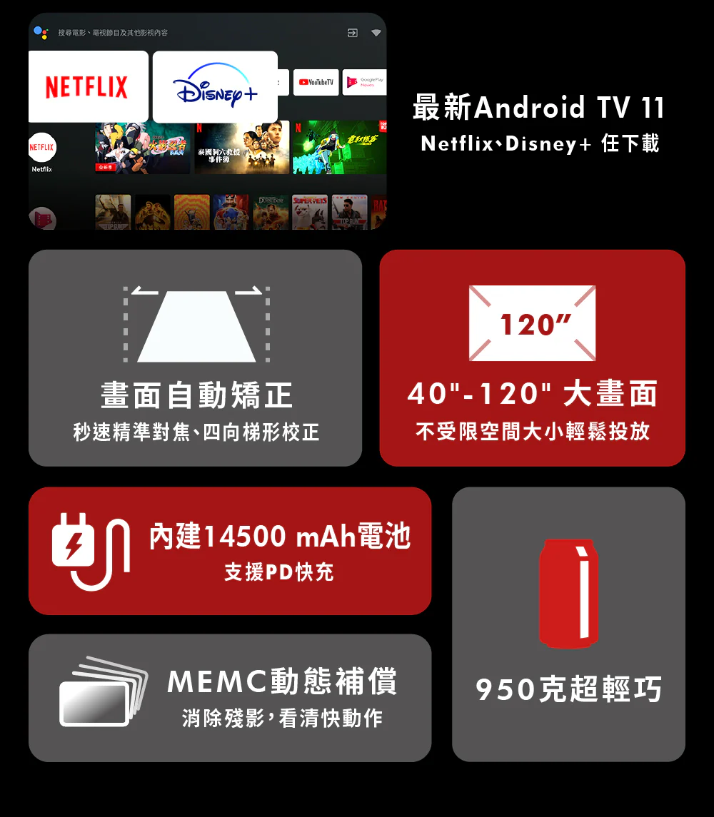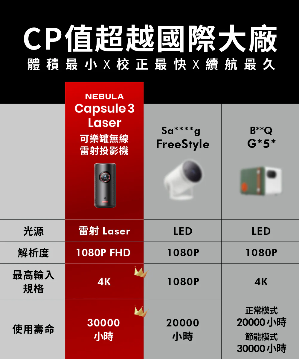 Capsule 3 Laser可樂罐 1080P 無線雷射微型投影機 一年保固