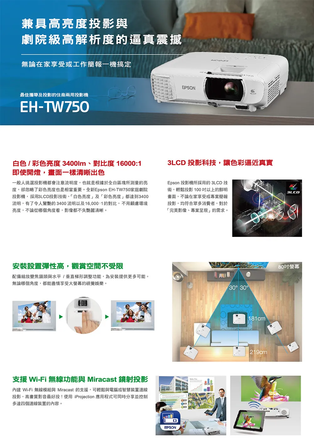 商品EPSON EF-100BATV 自由視 移動光屏