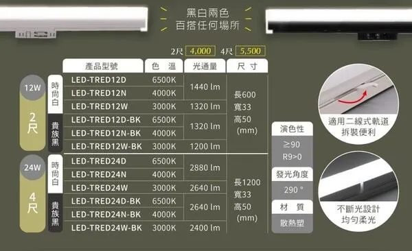 商品舞光LED 12W/24W達文西磁吸式 窄角/廣角/可擺角軌道燈 排燈 三種色溫 LED-MTSPL12 LED-MTFLL12