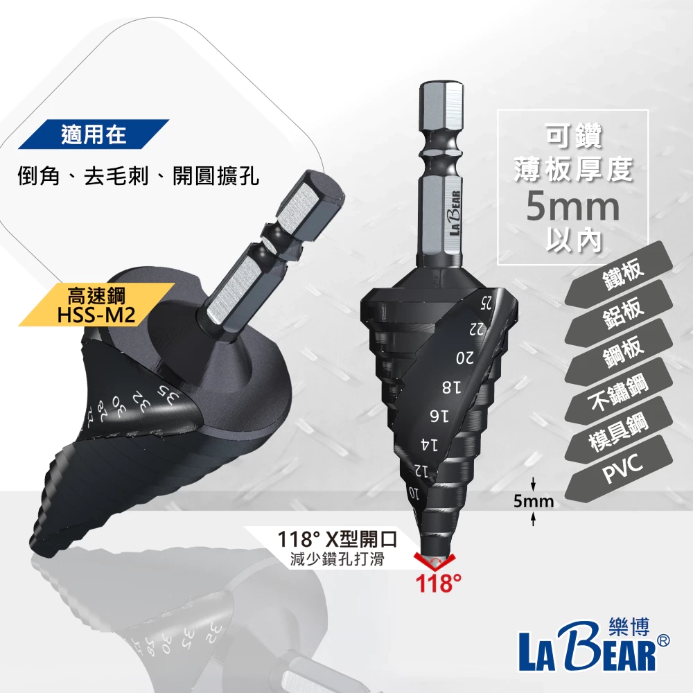 #階梯鑽尾 #梯型圓穴鑽 #擴孔專用穴鑽 #六角柄螺旋型 #強力階梯鑽 #寶塔鑽