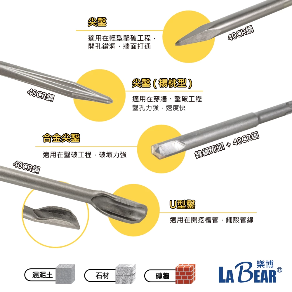 【LaBear】SDS四溝破壞鑿 尖鑿/合金尖鑿/合金平鑿/U型鑿
