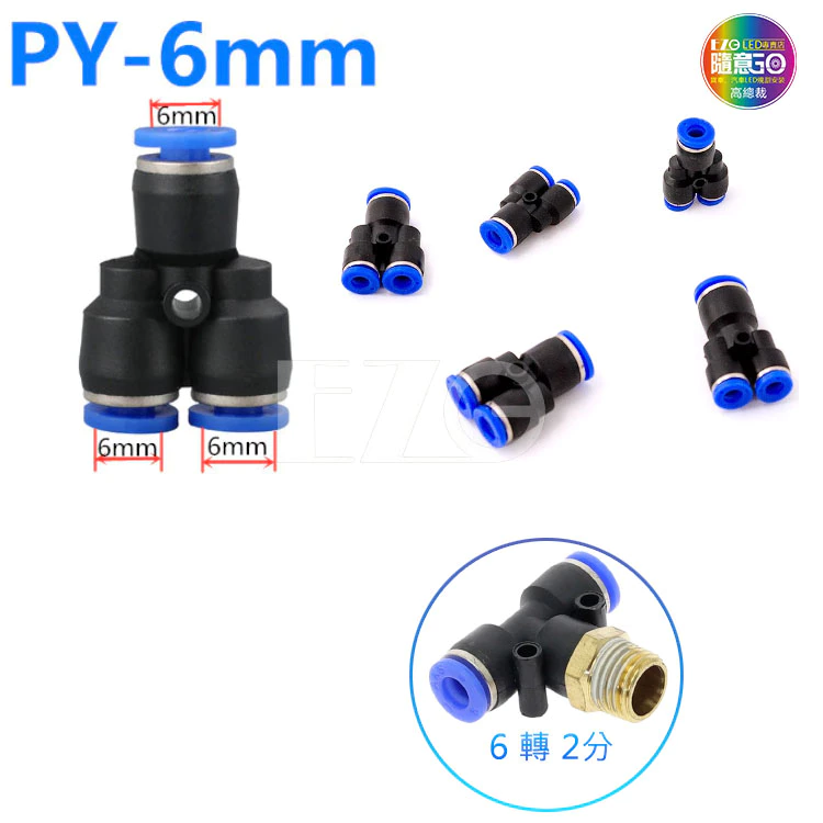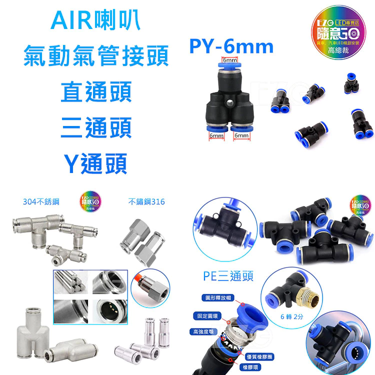 • 【高總裁LED 】台灣現貨 氣動氣管接頭 快速插氣管接頭 直通頭 T型三通頭 Y字通頭 AIR氣喇叭 變徑 對接 轉接頭