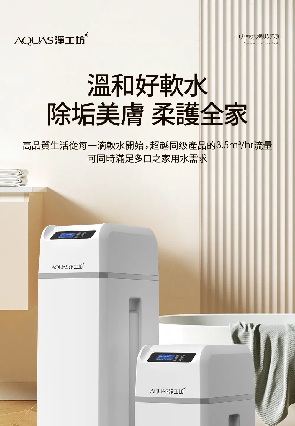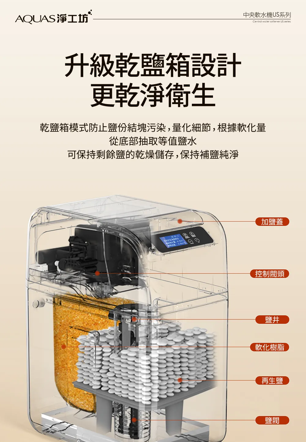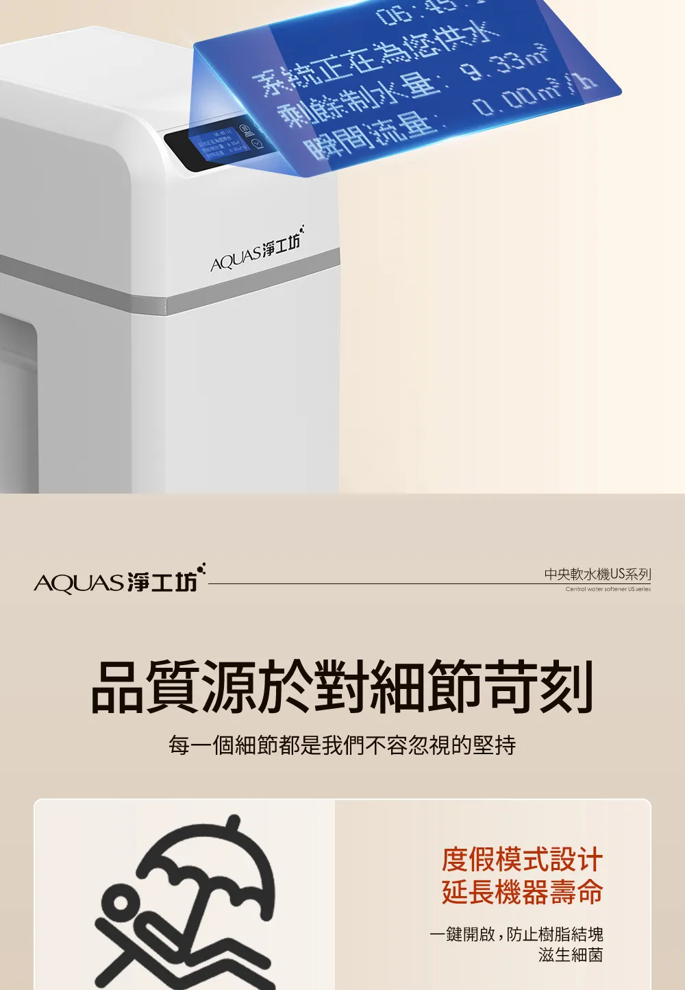 • AQ-100US(滑蓋式)</BR>全戶中央智能軟水機