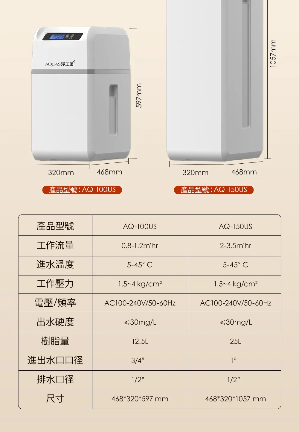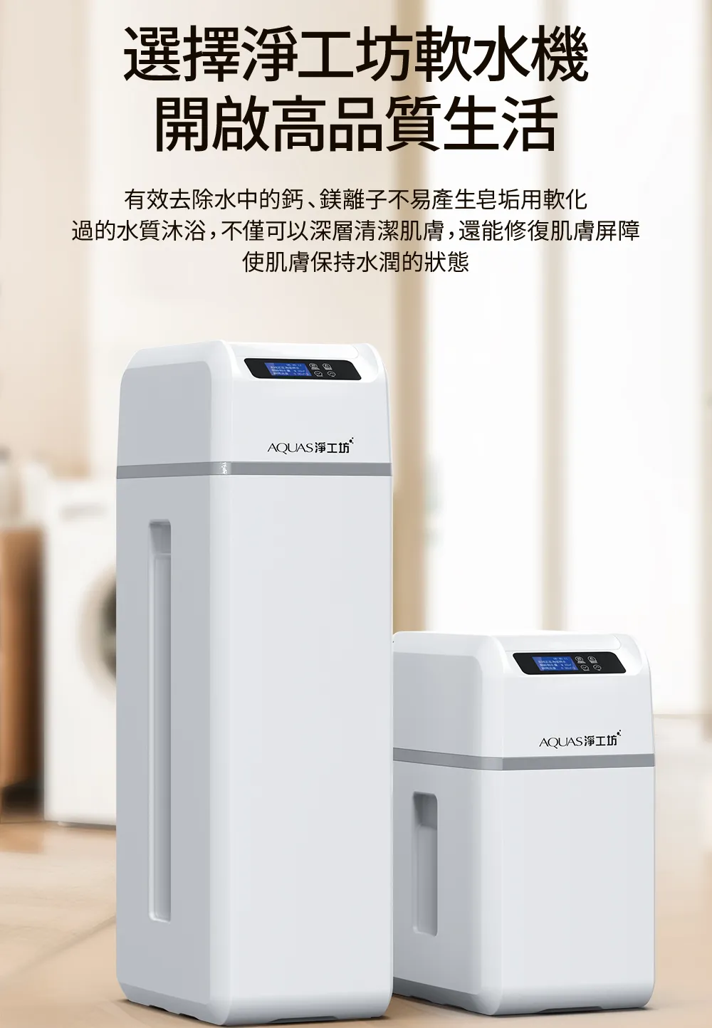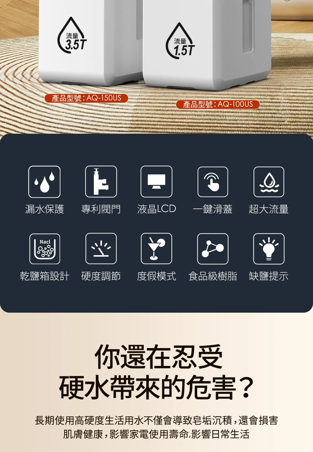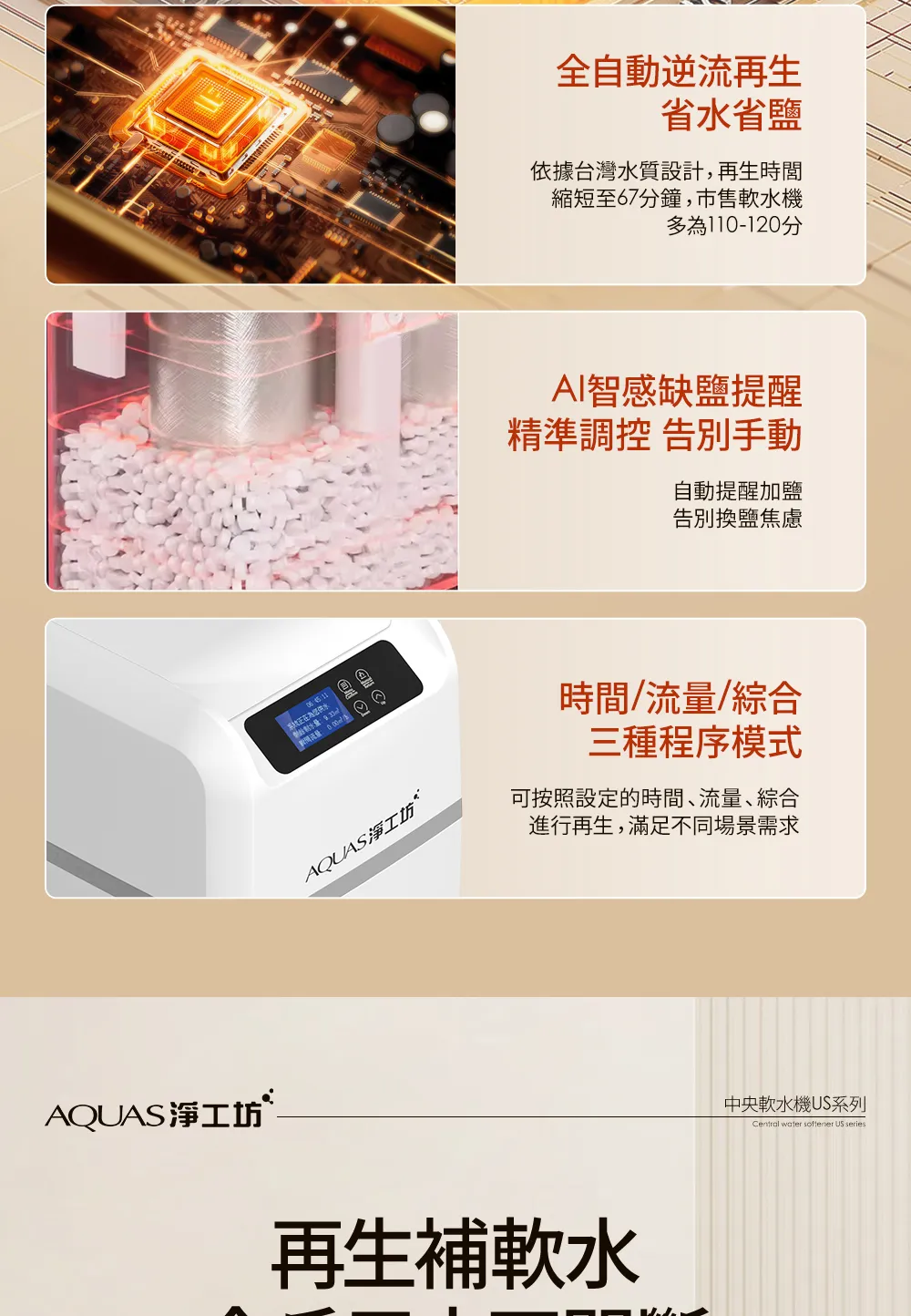 • AQ-100US(滑蓋式)</BR>全戶中央智能軟水機