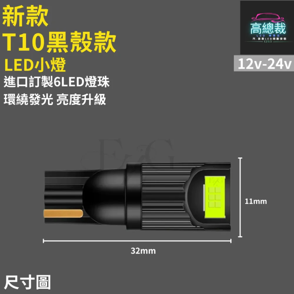 • 【高總裁LED 】台灣現貨 T10黑殼款 6顆LED 小燈 12V24V 尼亞用 歐規車 方向燈 車門燈 閱讀燈 腳底